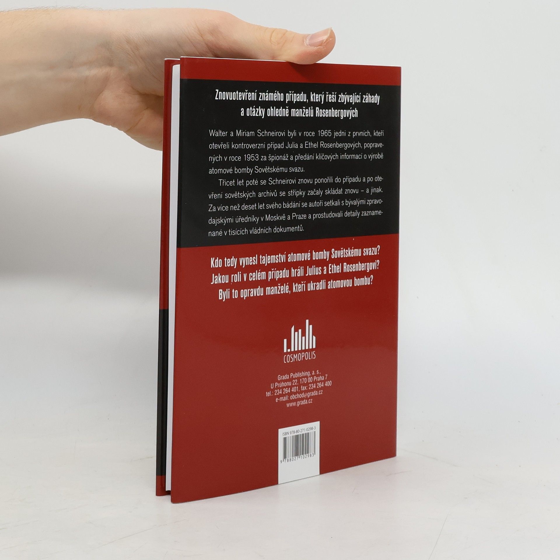 Pravda o případu Julia a Ethel Rosenbergových. Jediná a jedinečná kniha, která se věnuje případu Rosenbergových. V prvních letech studené války a v atmosféře zjitřené válkou v Koreji byli tito američtí komunisté odsouzeni k trestu smrti za špionáž ve prospěch Sovětského svazu. Kniha se věnuje znovuotevření známého případu, který řeší zbývající záhady a otázky ohledně manželů Julia e Ethel Rosenbergových Autoři knihy Manželé, kteří ukradli atomovou bombu Walter a Miriam Schneirovi byli v roce 1965 jedni z prvních, kteří otevřeli kontroverzní případ Julia a Ethel Rosenbergových, popravených v roce 1953 za špionáž a předání klíčových informací o výrobě atomové bomby Sovětskému svazu. Třicet let poté se Schneirovi znovu ponořili do případu a po otevření sovětských archivů se střípky začaly skládat znovu – a jinak. Za více než deset let svého bádání se autoři setkali s bývalými zpravodajskými úředníky v Moskvě a Praze a prostudovali detaily zaznamenané v tisících vládních dokumentů. Kdo tedy vynesl tajemství atomové bomby Sovětskému svazu? Jakou roli v celém případu hráli Julius a Ethel Rosenbergovi? Byli to opravdu manželé, kteří ukradli atomovou bombu?
