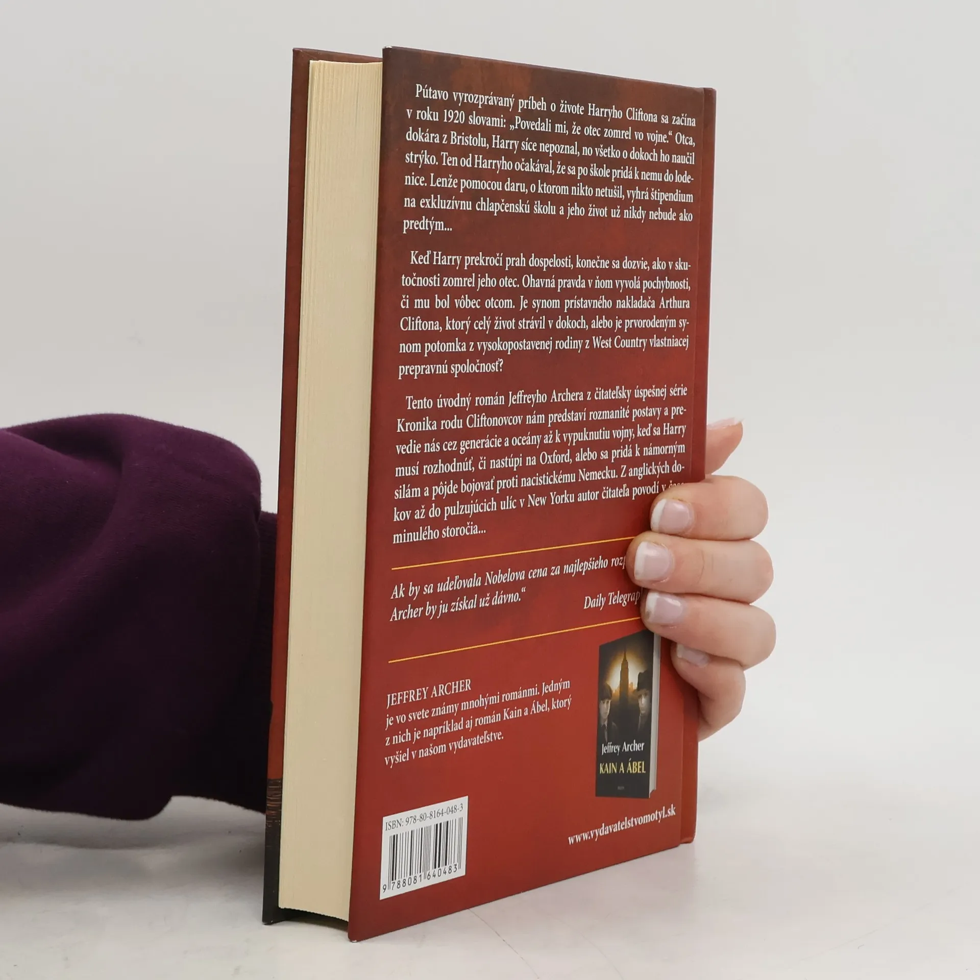 Pútavo vyrozprávaný príbeh o živote Harryho Cliftona sa začína v roku 1920 slovami: „Povedali mi, že otec zomrel vo vojne.“ Otca, dokára z Bristolu, Harry síce nepoznal, no všetko o dokoch ho naučil strýko. Ten od Harryho očakával, že sa po škole pridá k nemu do lodenice. Lenže pomocou daru, o ktorom nikto netušil, vyhrá štipendium na exkluzívnu chlapčenskú školu a jeho život už nikdy nebude ako predtým... Keď Harry prekročí prah dospelosti, konečne sa dozvie, ako v skutočnosti zomrel jeho otec. Ohavná pravda v ňom vyvolá ­pochybnosti, či mu bol vôbec otcom. Je synom prístavného nakladača Arthura ­Cliftona, ktorý celý život strávil v dokoch, alebo je prvorodeným synom potomka z vysokopostavenej rodiny z West Country vlastniacej prepravnú spoločnosť? Tento úvodný román Jeffreyho Archera z čitateľsky úspešnej série Kronika rodu Cliftonovcov nám predstaví rozmanité postavy a prevedie nás cez generácie a oceány až k vypuknutiu vojny, keď sa Harry musí rozhodnúť, či nastúpi na Oxford, alebo sa pridá k námorným silám a pôjde bojovať proti nacistickému Nemecku. Z anglických dokov až do pulzujúcich ulíc v New Yorku autor čitateľa povodí v čase minulého storočia...