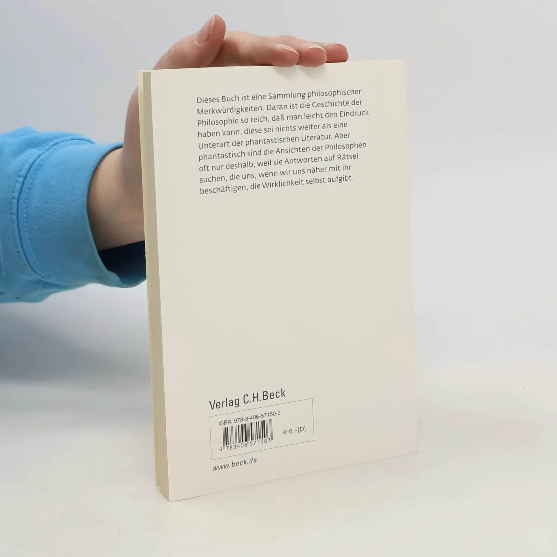 Dieses Buch ist eine Sammlung philosophischer Merkwürdigkeiten. Davon ist die Geschichte der Philosophie so reich, daß man leicht den Eindruck haben kann, diese sei nichts weiter als eine Unterart der phantastischen Literatur. Aber phantastisch sind die Ansichten der Philosophen oft nur deshalb, weil sie Antworten auf Rätsel suchen, die uns, wenn wir uns näher mit ihr beschäftigen, die Wirklichkeit selbst aufgibt.