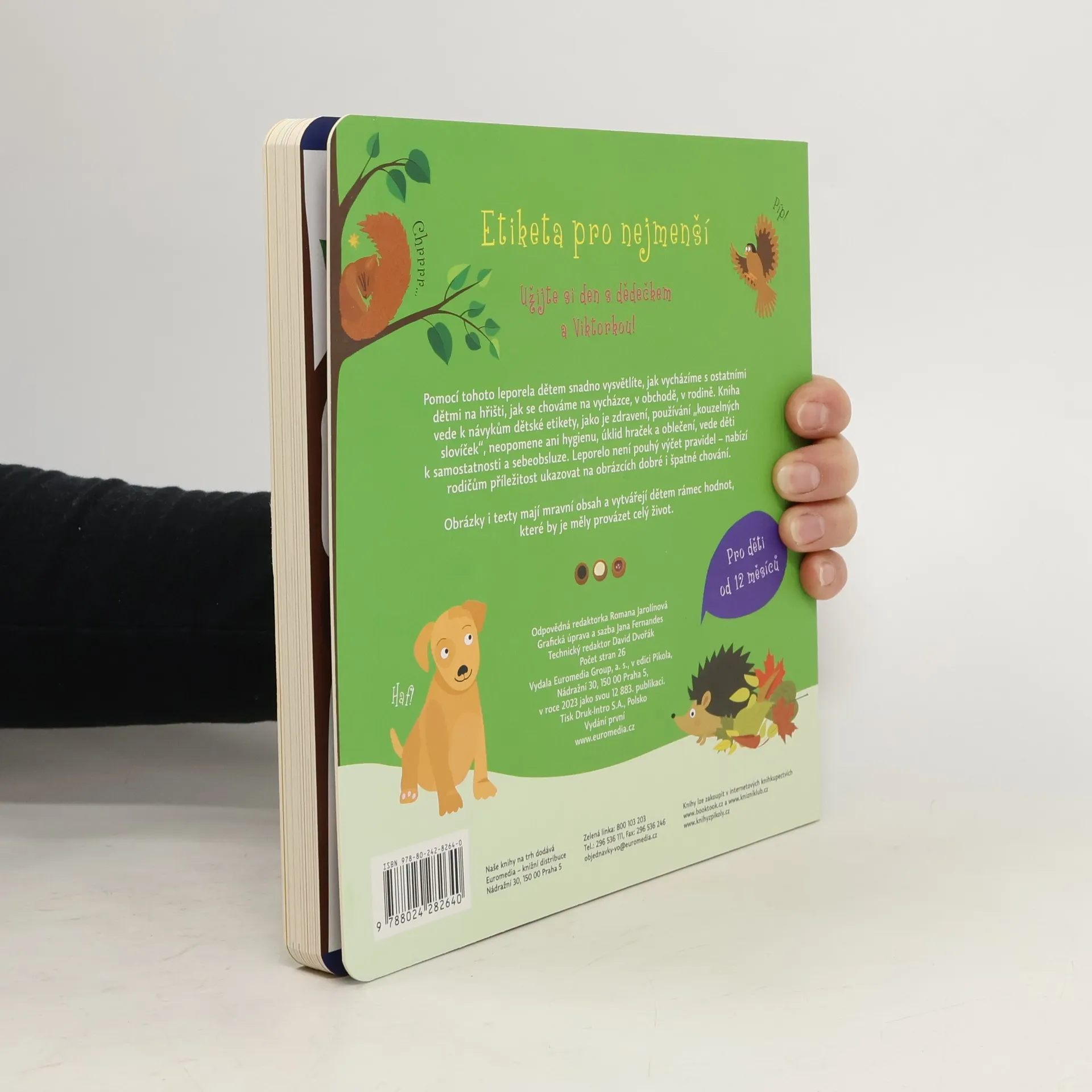 Etiketa pro nejmenšíUžijte si den s dědečkem a Viktorkou!Pomocí tohoto leporela, které doplňuje oblíbenou knižní sérii Dědečku, vyprávěj, dětem snadno vysvětlíte, jak vycházíme s ostatními dětmi na hřišti, jak se chováme na vycházce, v obchodě, v rodině. Kniha vede k návykům dětské etikety, jako je zdravení, používání prosím a děkuji, neopomene ani hygienu, úklid hraček a oblečení, vede děti k samostatnosti a sebeobsluze.