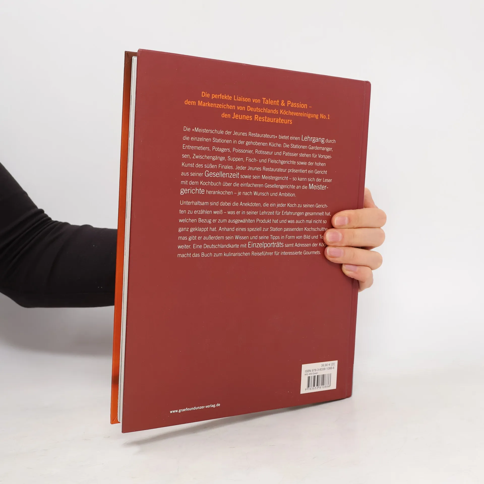 Die "Jeunes Restaurateurs" gibt es in Deutschland seit 1991, in Frankreich seit 1974. Ihr Anliegen ist es, Tradition der Kochkunst mit neuen Anregungen zu verbinden. In Deutschland gehören so prominente Köche wie Alexander Herrmann (Präsident) und Cornelia Poletto dazu. 45 von ihnen steuern jeweils 2 Rezepte (Gesellenstück und Meisterstück) bei, von Forellenfilet mit Meerrettich bis Zwetschendatschi. Dazu jeweils amüsant zu lesende Erfahrungen aus ihrem Werdegang. Ein ganz informativer Rundgang durch die Küchenstationen, im Zeitalter der Kochsendungen stösst sowas durchaus auf Interesse. Die Rezepte sind nicht unbedingt Alltagsküche, aber mit den Grundrezepten und dem Glossar im Anhang ist das durchaus nachvollziehbar
