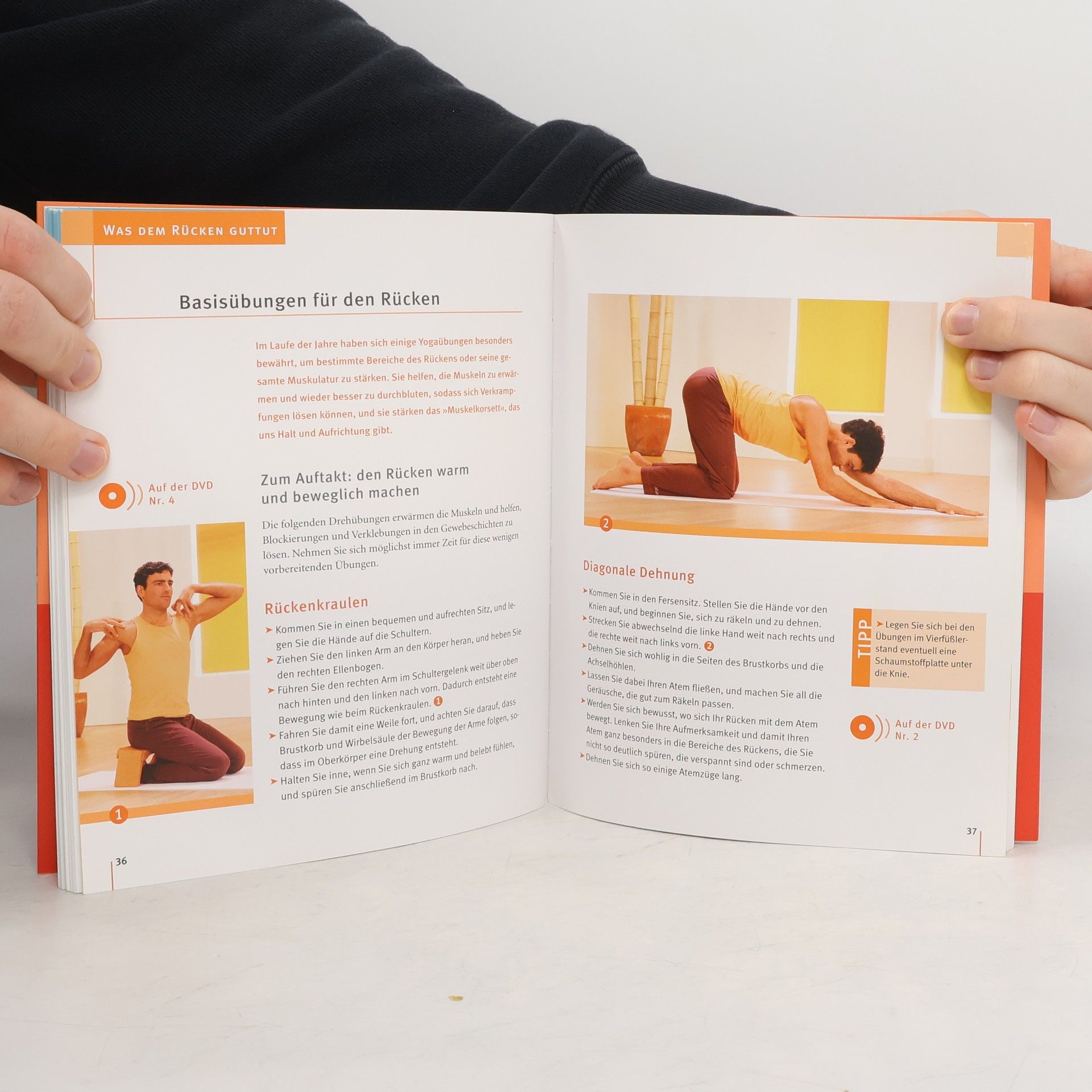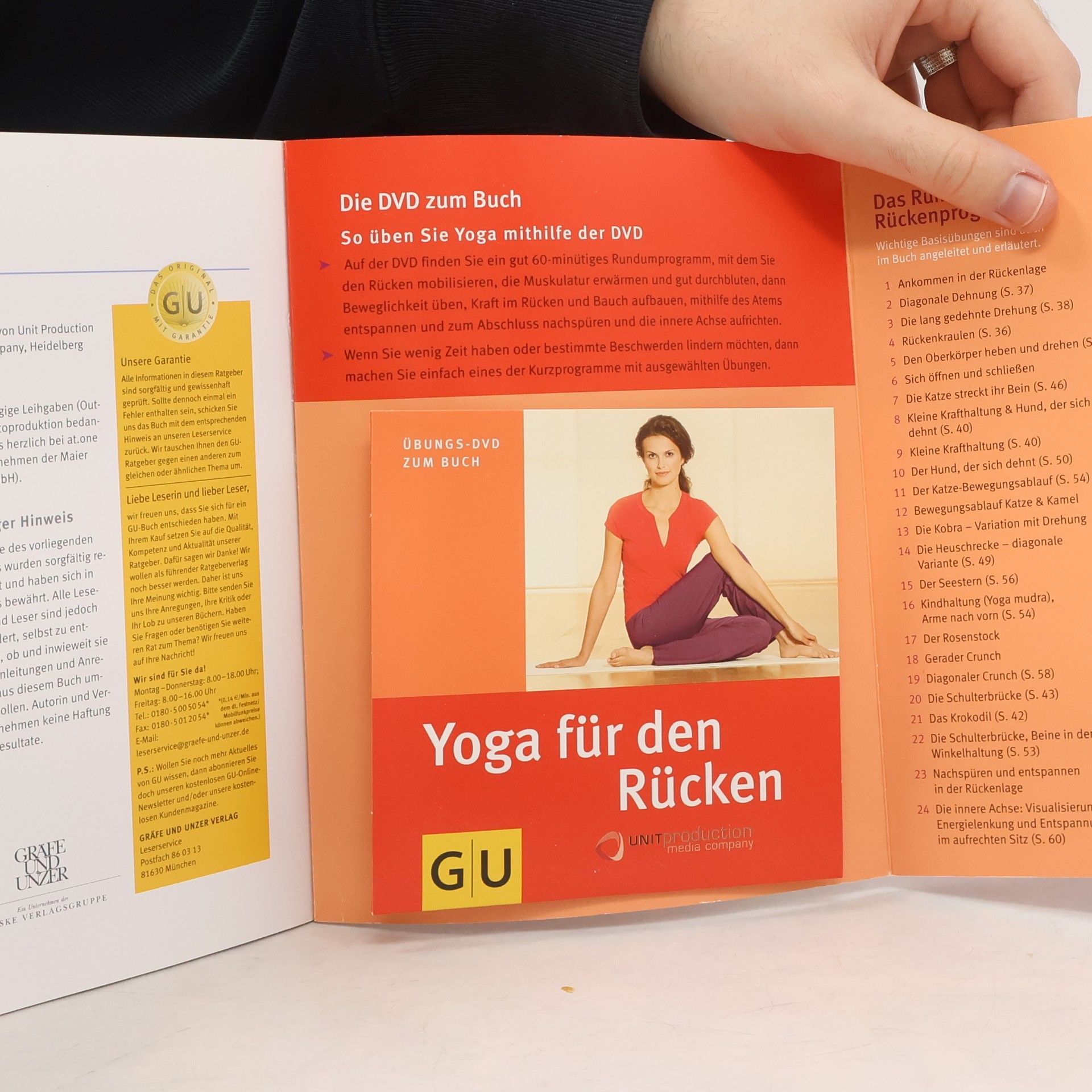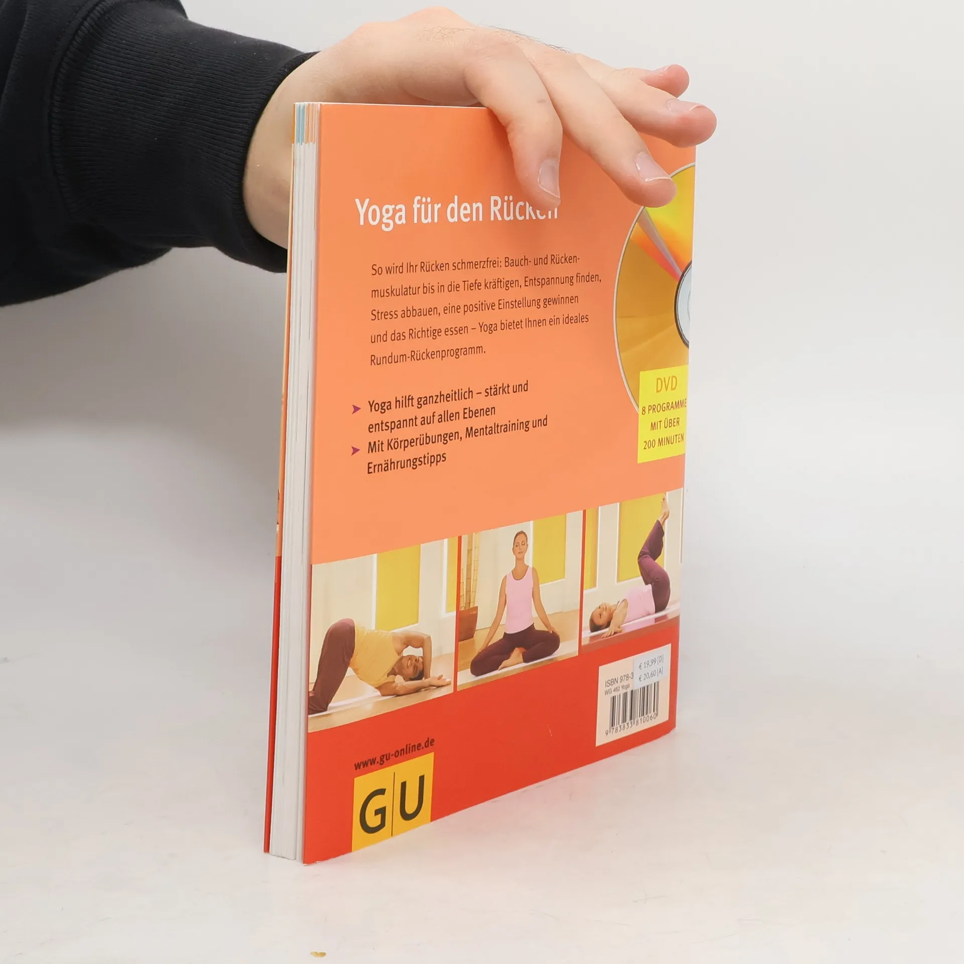 Rückenprobleme sind neben dem Bedürfnis zu entspannen die häufigste Ursache, warum viele Menschen Yoga zu üben. Doch helfen können die Übungen nur, wenn sie auch regelmäßig mehrmals in der Woche gemacht werden - und daran scheitern viele. Mit der neuen Yoga-DVD, die gezielte Rückenprogramme für die verschiedenen Bereiche des Rückens anbietet, fällt es deutlich leichter, regelmäßig auch allein zu Hause zu üben. Man wird begleitet und motiviert von drei Yoga-Übenden, die manchmal verschiedene Varianten eines Asanas zeigen, und der Stimme von Anna Trökes, die die Übungen genau anleitet und erklärt. Das Buch bietet darüber hinaus alles Wissenswerte über die Wirbelsäule. Auch wird erklärt, warum Körperübungen alleine oft nicht wirken, wenn die Ursachen seelischer Natur sind und welche mentalen Übungen aus der Yogatradition und aus dem modernen Rückenbraining helfen können. Schließlich gibt es noch ayurvedische Ernährungshinweise sowie Tipps zur Entsäuerung und zu Schüßler-Salzen.