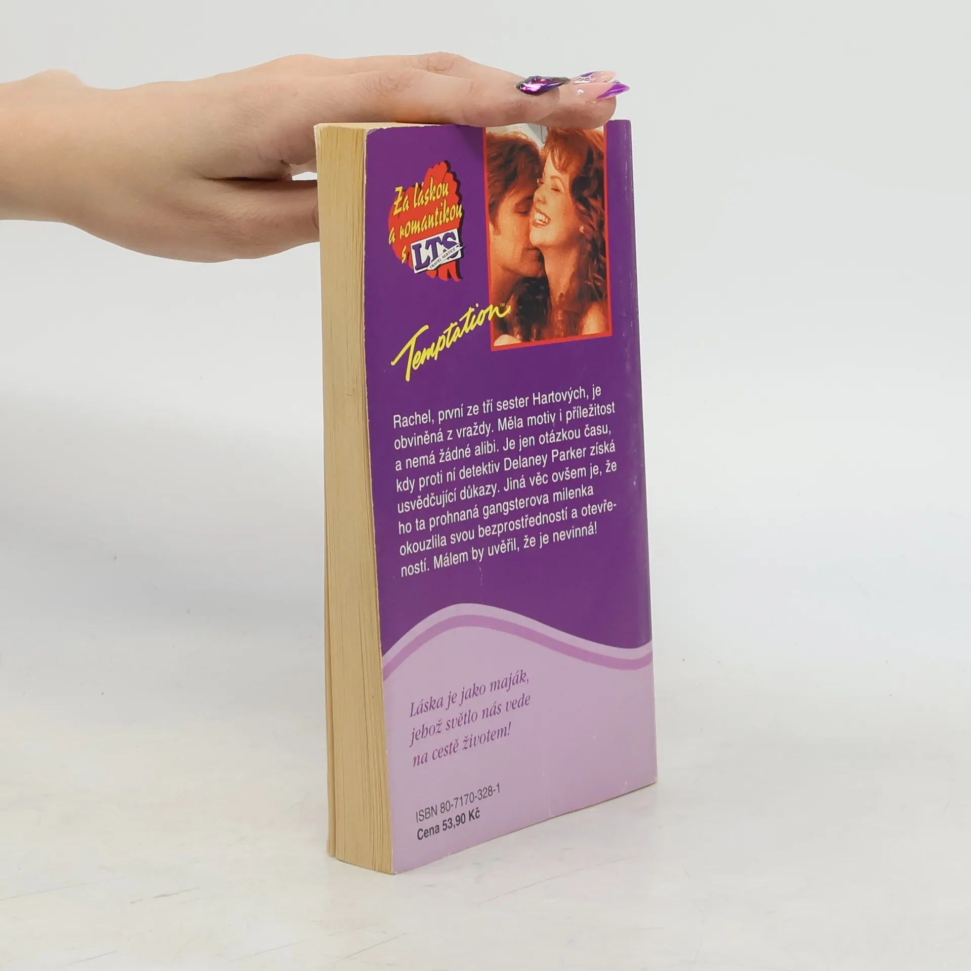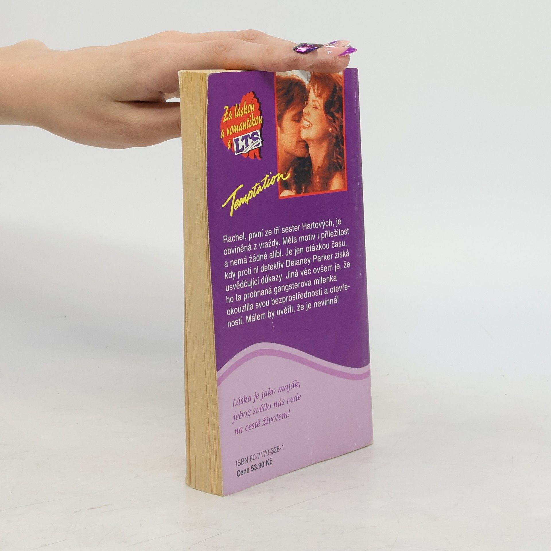 Rachel, první ze tří sester Hartových, je obviněna z vraždy. Měla motiv i příležitost a nemá žádné alibi. Je jen otázkou času, kdy proti ní detektiv Delaney Parker získá usvědčující důkazy. Jiná věc ovšem je, že ho ta prohnaná gangsterova milenka okouzlila svou bezprostředností a otevřeností. Málem by uvěřil, že je nevinná!