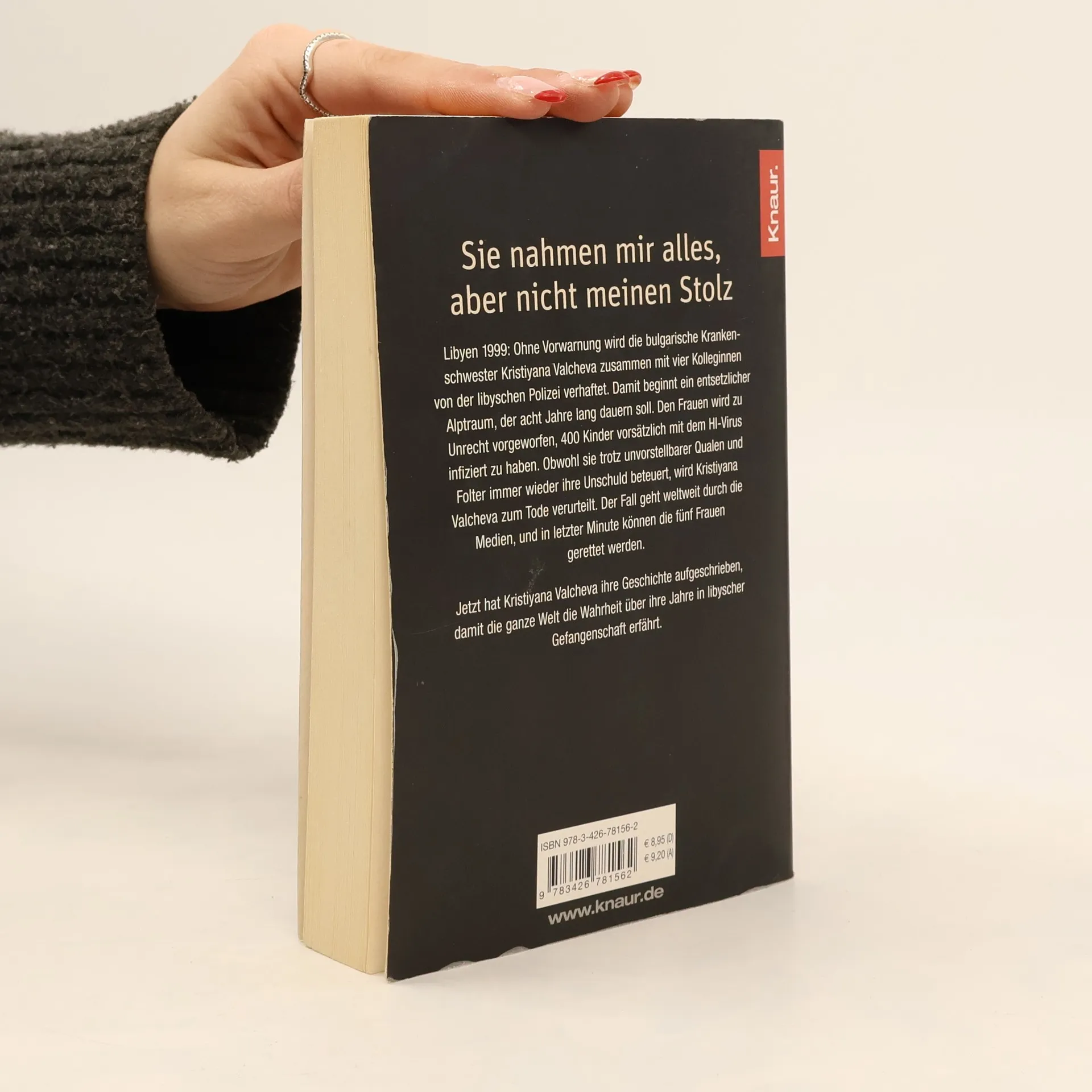 Libyen, 1999: Ohne Vorwarnung wird die bulgarische Krankenschwester Kristiyana Valcheva zusammen mit vier Kolleginnen von der libyschen Polizei verhaftet. Damit beginnt ein entsetzlicher Alptraum, der acht Jahre lang dauern soll. Den Frauen wird zu Unrecht vorgeworfen, 400 Kinder vorsätzlich mit dem HI-Virus infiziert zu haben. Obwohl sie trotz unvorstellbarer Qualen und Folter immer wieder ihre Unschuld beteuert, wird Kristiyana Valcheva zum Tode verurteilt. Der Fall geht weltweit durch die Medien, und in letzter Minute können die fünf Frauen gerettet werden. Jetzt hat Kristiyana Valcheva ihre Geschichte aufgeschrieben, damit die ganze Welt die Wahrheit über ihre Jahre in libyscher Gefangenschaft erfährt.