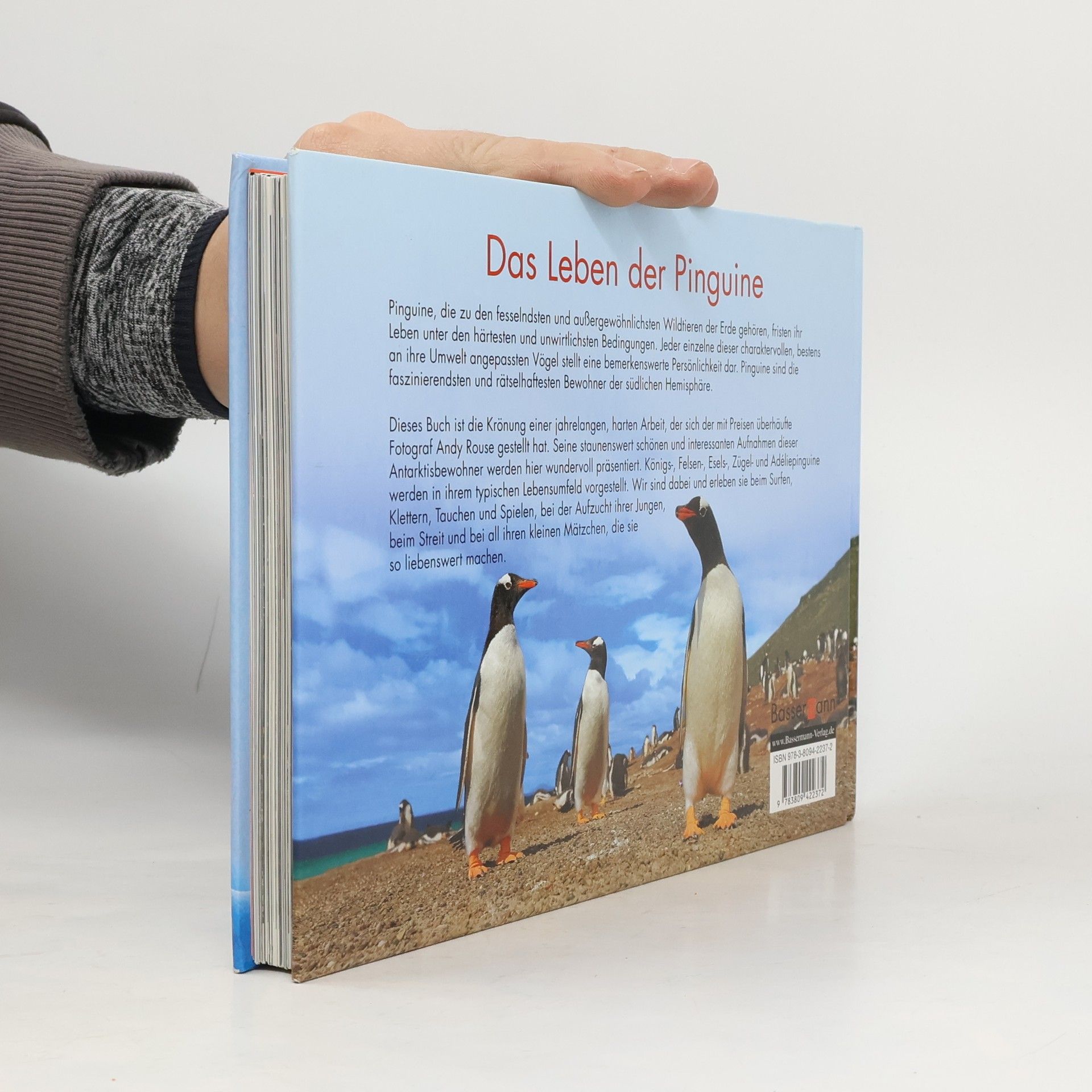 Die außergewöhnlichsten Tiere der Erde Pinguine sind die faszinierendsten und rätselhaftesten Bewohner der südlichen Hemisphäre und leben unter harten und unwirtlichen Bedingungen. Jeder einzelne dieser charaktervollen, bestens an ihre Umwelt angepassten Vögel ist eine bemerkenswerte Persönlichkeit. Dieses Buch ist die Krönung der jahrelangen, harten Arbeit des mit Preisen überhäuften Fotograf Andy Rouse. Seine staunenswert schönen und interessanten Aufnahmen dieser Antarktisbewohner in diesem prachtvollen Bildband zeigen Königs-, Felsen-, Esels-, Zügel- und Adéliepinguine in ihrem ganz typischen Lebensumfeld.