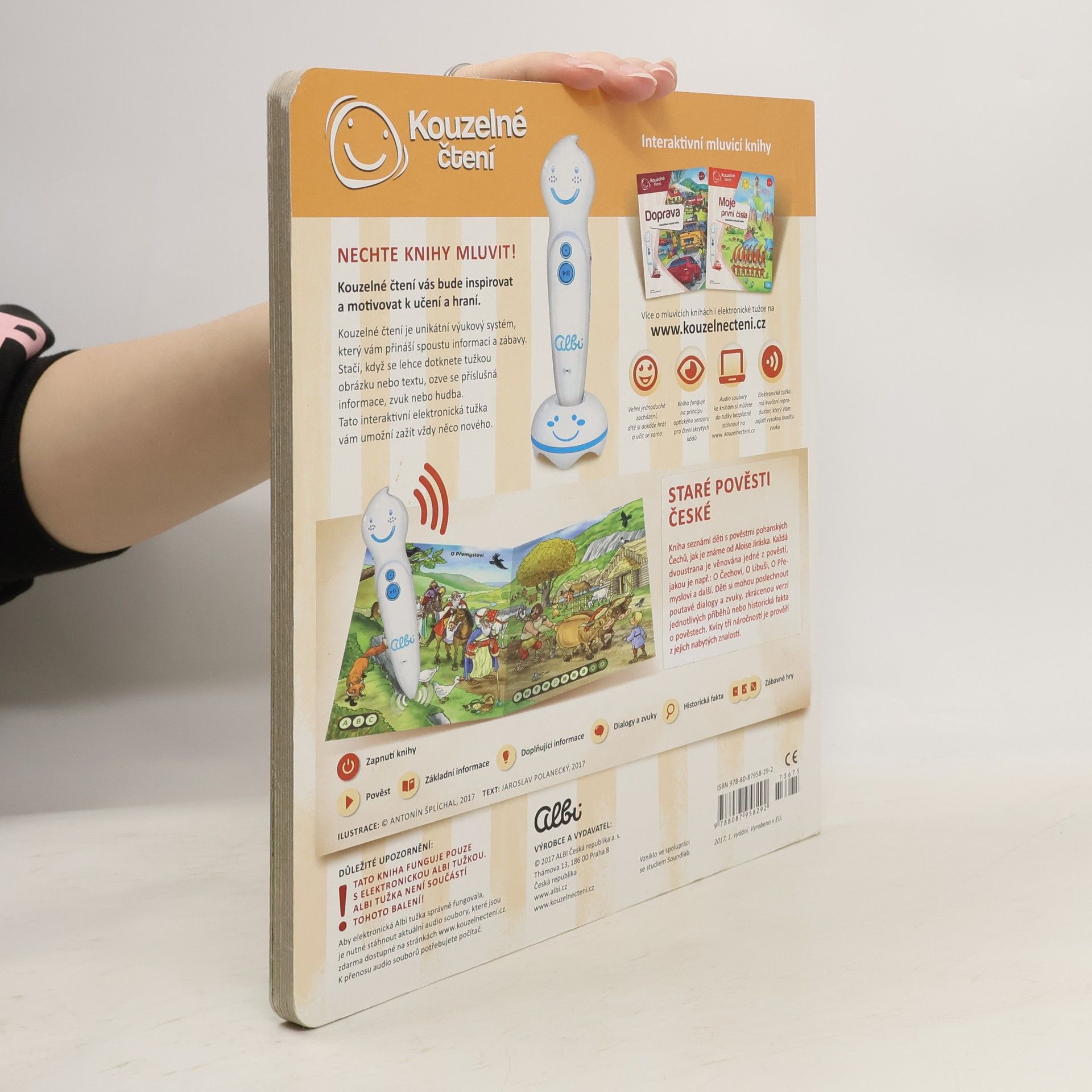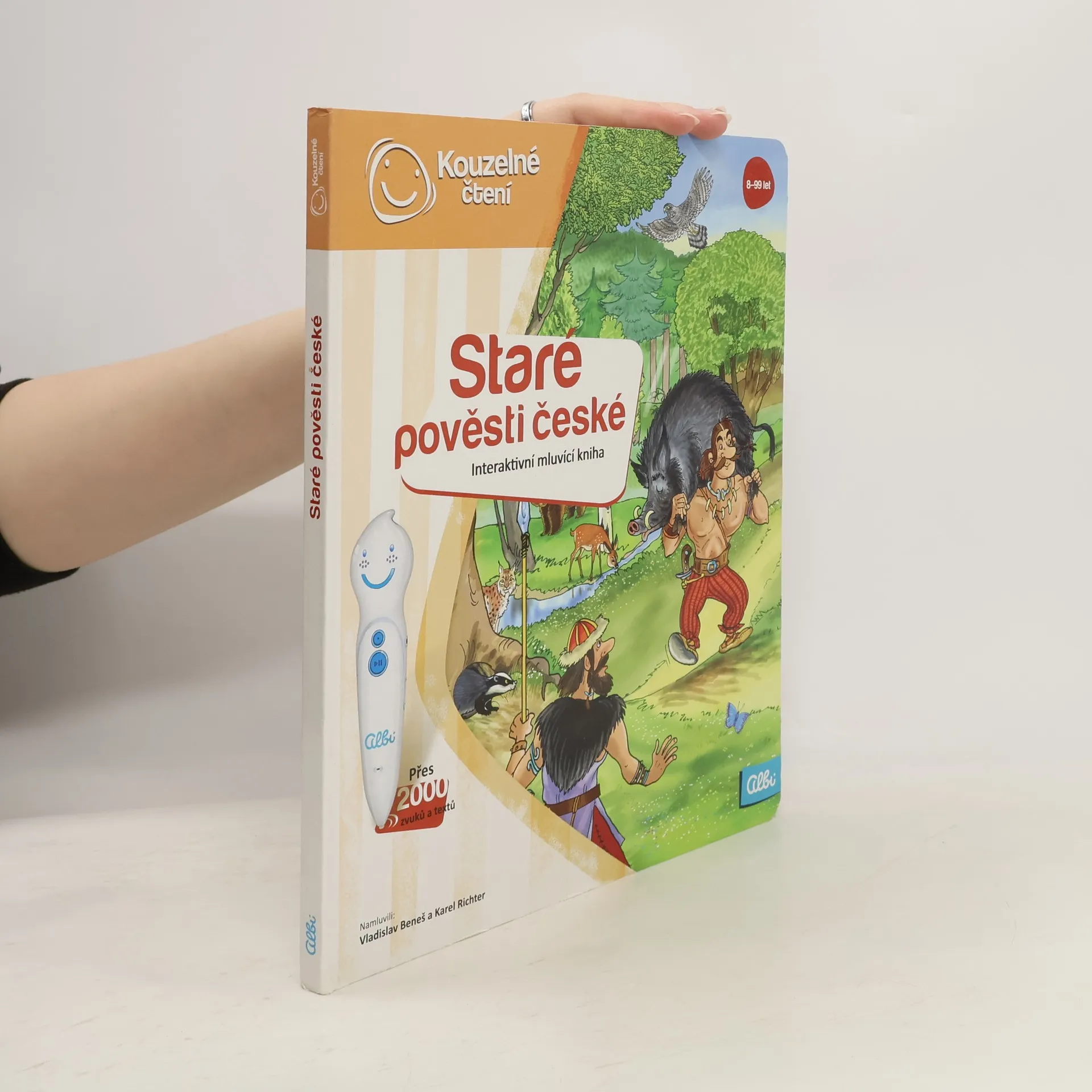 Kniha Staré pověsti české z edice Kouzelné čtení provede děti od 8 let pověstmi pohanských Čechů od Aloise Jiráska. Každá dvoustrana knihy je věnována jedné pověsti. Těšit se můžete na tyto pověsti - O Čechovi, O Krokovi a jeho dcerách, O Bivoji, O Libuši, O Přemyslovi, Libušina proroctví, O Křesomyslu a Horymírovi a Lucká válka. V naučné knize na děti čeká zkrácená verze jednotlivých pověstí, seznámení s postavami, poutavé dialogy a zvuky. V knize Staré pověsti české nechybí zajímavé kvízy. Tentokrát ve 3 obtížnostech - od jednoduchého na poznávání předmětů, po složitější, kdy děti dostávají na výběr ze 3 odpovědí a určují, která odpověď je správná. Krásné ilustrace Antonína Šplíchala rozvinou fantazii, jak vše mohlo vypadat a výstižné dialogy nakreslených postav předají dětem nenásilnou formou podstatu jednotlivých pověstí. Kniha Staré pověsti české obsahuje přes 2000 zvuků a textů. Namluvili ji Vladislav Beneš a Karel Richter.