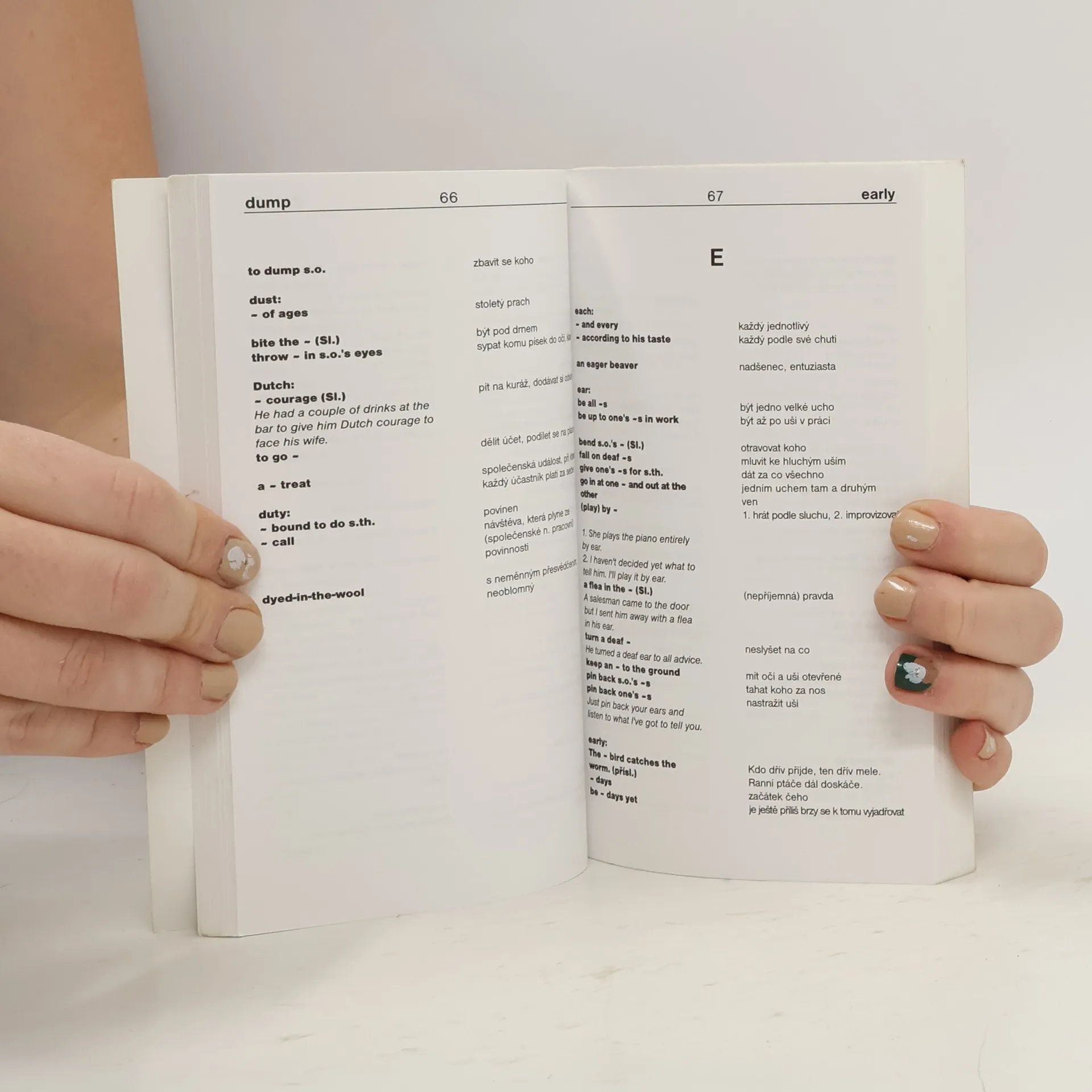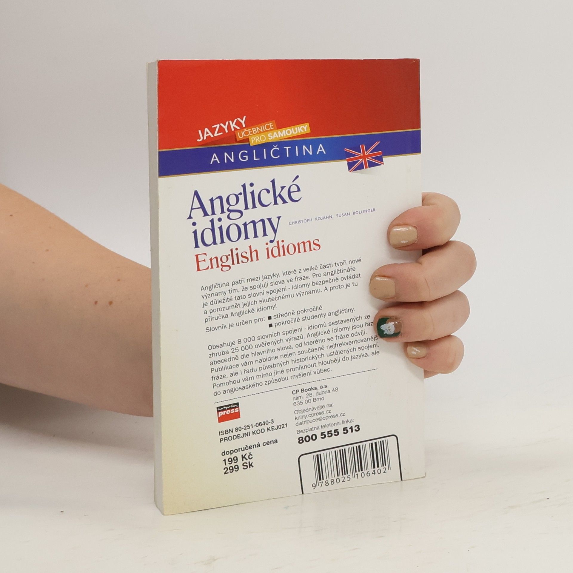 Angličtina patří mezi jazyky, které z velké části tvoří nové významy tím, že spojují slova ve fráze. Proto je pro angličtináře důležité tato slovní spojení – idiomy bezpečně ovládat a porozumět jejich skutečnému významu. A proto je tu příručka Anglické idiomy! Slovník je určen pro: * středně pokročilé * pokročilé studenty angličtiny. Obsahuje 8 000 slovních spojení – idiomů sestavených ze zhruba 50 000 ověřených výrazů. Anglické idiomy jsou řazeny abecedně dle hlavního slova, od kterého se fráze odvíjí. Publikace vám nabídne nejen současné nejfrekventovanější fráze, ale i řadu půvabných historických ustálených spojení. Pomohou vám mimo jiné proniknout hlouběji nejen do jazyka, ale i do anglosaského způsobu myšlení vůbec.