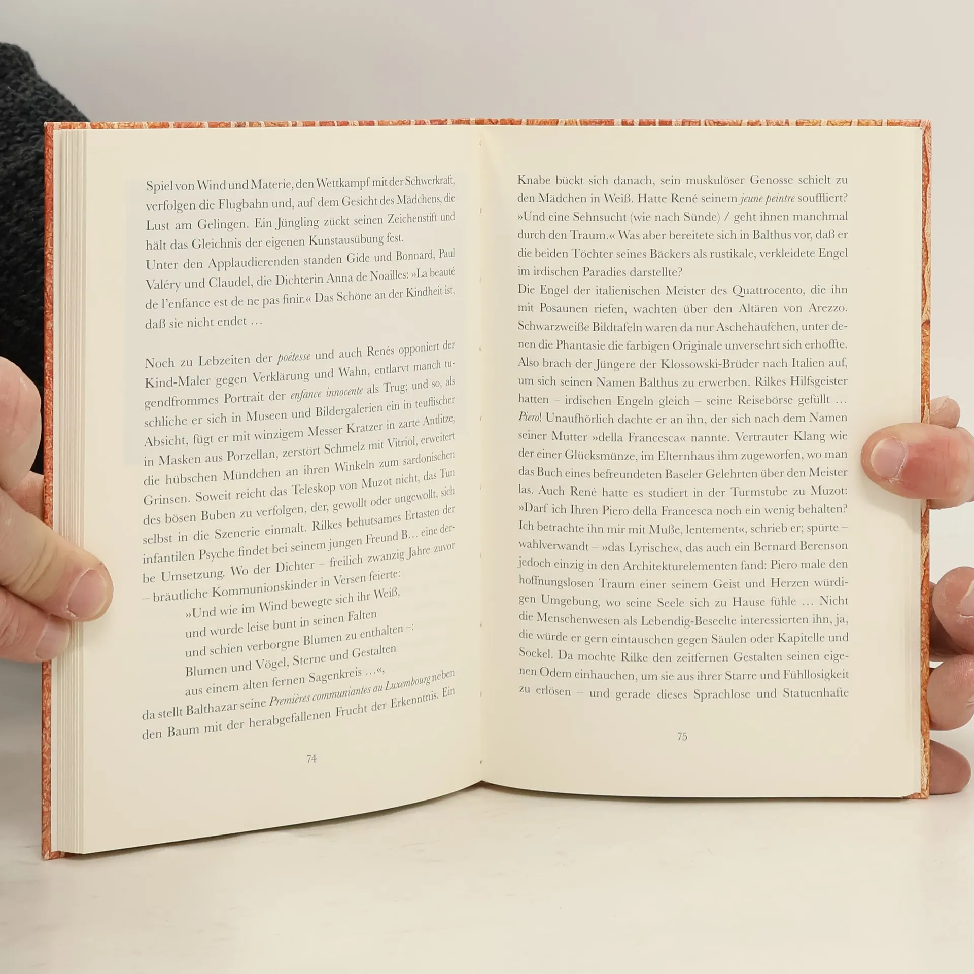 „Gott weiß, wie glücklich ich wäre, immer Kind bleiben zu können“, schrieb der Vierzehnjährige in einem Brief. Die Kindheitsthematik durchzieht das Œuvre von Balthazar Klossowski, genannt Balthus. Rilke erkannte früh das Talent des Jungen und verfaßte ein Vorwort zu dessen Katzenbuch Mitsou. Die Kinder und jungen Mädchen aus Rilkes Gedichten, aus dem Malte Laurids Brigge spiegeln sich in vielen von Balthus’ Tableaus. Das Buch geht der vielfältigen, sowohl privaten als auch künstlerischen Beziehung von Balthus und Rilke nach. Es enthält Abbildungen von Gemälden und fotografische Aufnahmen.