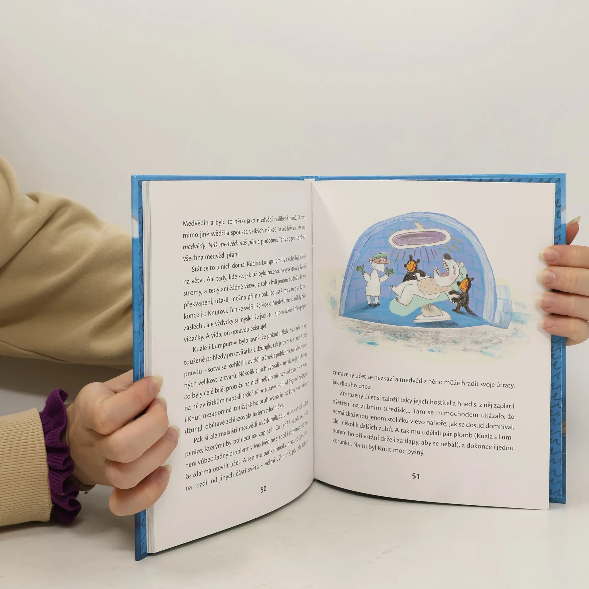 Není medvěd jako medvěd: v různých částech světa žijí různé druhy chlupáčů, kteří se od sebe liší velikostí, barvou srsti i způsobem života. Obvykle se spolu navzájem příliš nestýkají, ale v této knížce je tomu jinak. Obrovský bílý lední medvěd Knut pozve svoje kamarády, malé černé malajské medvídky Kualu a Lumpura, na návštěvu k sobě do Arktidy. Společně prožijí neobyčejnou plavbu na kře. Na rozdíl od svého tropického domova ale Kuala a Lumpur musí na Arktidě ledacos vydržet, třeba nedobrovolnou koupel v ledovém moři... Naštěstí se seznámí s polárníkem a expertem na medvědy, který vaří výbornou horkou polévku. A tím jejich dobrodružství ještě zdaleka nekončí… Kniha určena dětem od 6 let.