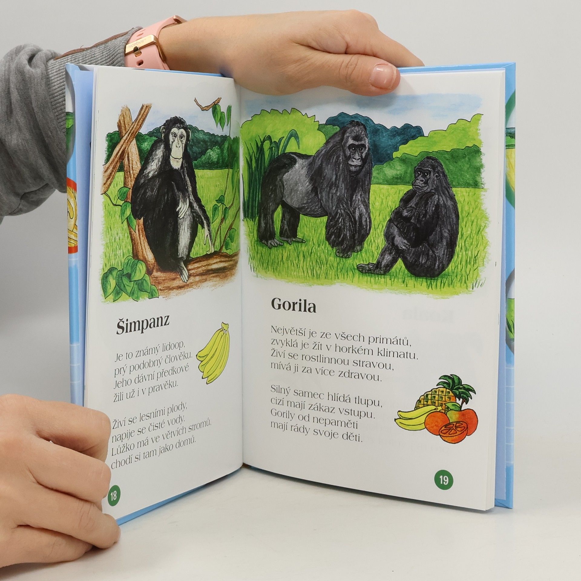 Říkanky se zvířátky doplňují oblíbenou knihu Kamarádi zvířátka, v níž se děti seznámily se zvířátky ze statku a zahrady, z lesa, vody i ze vzduchu, ale i s různými domácí mazlíčky. Tentokrát se děti pomocí nápaditých básniček a názorných obrázků dozvědí mnoho zajímavého o zvířátkách žijících na poušti, v prériích a stepích, na savaně, v polárních oblastech, v pralese, a dokonce i na korálovém útesu. Nejenže se děti podle obrázků naučí zvířátka dobře rozpoznat, ale básničky si i dobře zapamatují a zároveň si díky nim rozšíří své vědomosti.