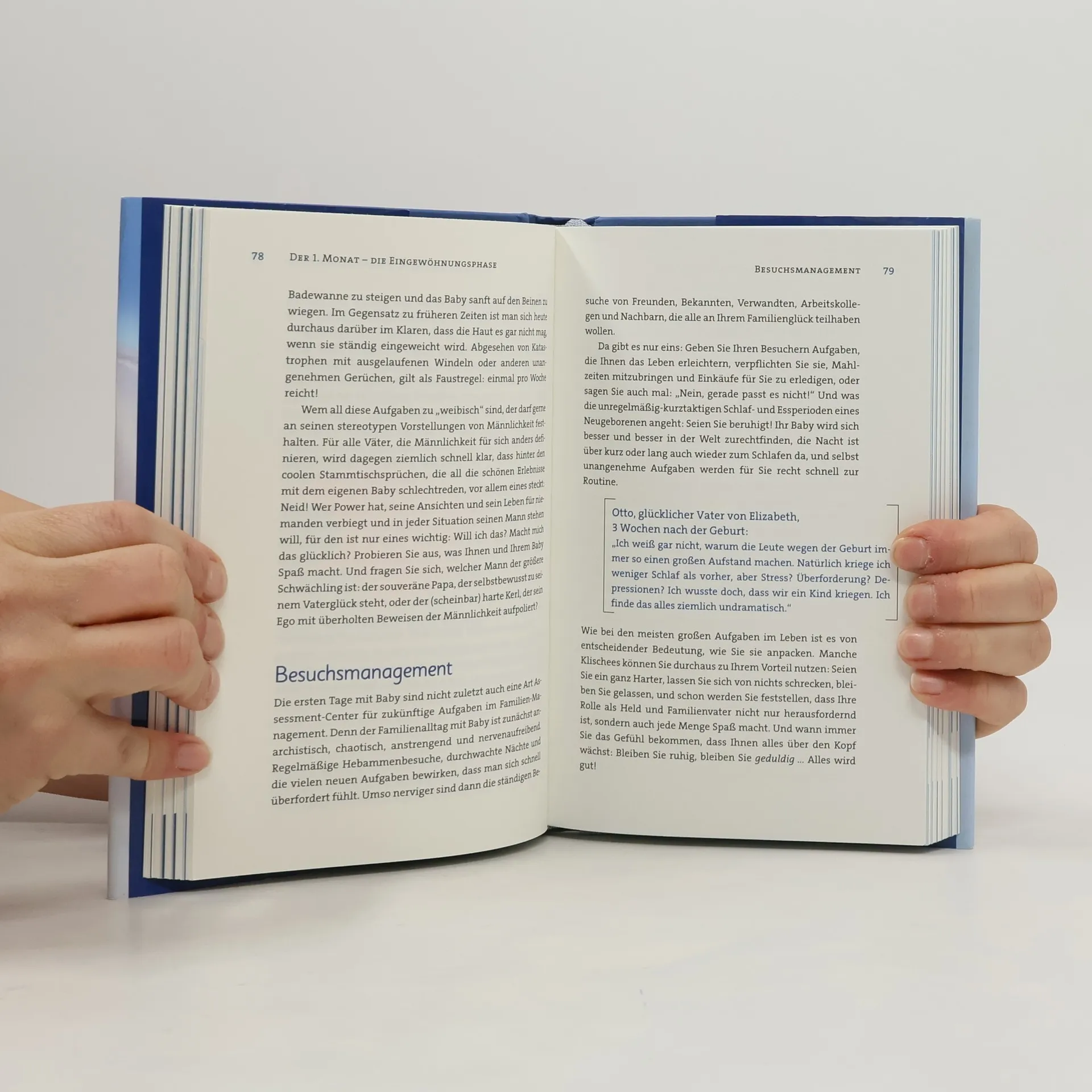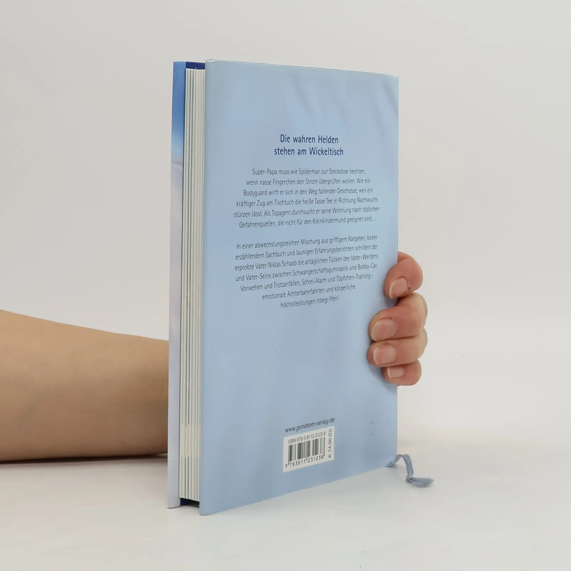 Super-Papa muss wie Spiderman zur Steckdose hechten, wenn nasse Fingerchen den Strom überprüfen wollen, wie ein Bodyguard wirft er sich in den Weg fallender Geschosse, weil ein kräftiger Zug am Tischtuch die heiße Tasse Tee in Richtung Nachwuchs stürzen lässt. Als Topagent durchsucht er seine Wohnung nach tödlichen Gefahrenquellen, die nicht für den Kleinkindermund geeignet sind … In einer abwechslungsreichen Mischung aus griffigem Ratgeber, locker erzählendem Sachbuch und launigen Erfahrungsberichten schildert der Vater Niklas Schaab die alltäglichen Tücken des Vater-Werdens und Vater-Seins zwischen Schwangerschaftsgymnastik und Bobby-Car, Vorwehen und Trotzanfällen, Schrei-Alarm und Töpfchen-Training – emotionale Achterbahnfahrten und körperliche Höchstleistungen inbegriffen!