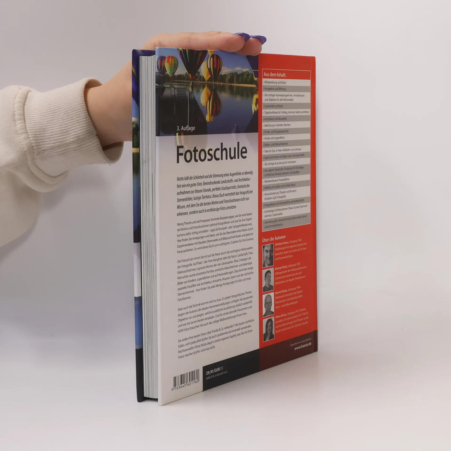 Nichts hält die Schönheit und die Stimmung eines Augenblicks so lebendig fest wie ein gutes Foto. Beeindruckende Landschafts- und Architekturaufnahmen zur blauen Stunde, perfekte Studioporträts, fantastische Sternenbilder, lustige Tierfotos: Dieses Buch vermittelt das fotografische Wissen, mit dem Sie die besten Motive und Fotosituationen nicht nur Aber auch die Technik kommt nicht zu kurz. Zu jedem fotografischen Thema zeigen die Autoren die idealen Kameraeinstellungen, schlagen die passenden Objektive vor und zeigen, welche zusätzliche Ausstattung wirklich weiterhilft und wie Sie sie am besten einsetzen. Und für eindrucksvolle Panoramen und HDR-Fotos brauchen Sie auch das nötige Bildbearbeitungs-Know-how. Sie wollen Ihre besten Fotos über Fotolia & Co. verkaufen? Hier lauern rechtliche Fallen, nicht jedes Bild dürfen Sie auch problemlos kommerziell verwenden. Rechtsanwältin Vilma Niclas zeigt in einem eigenen Kapitel, was Sie mit Ihren Fotos machen dürfen und was nicht.