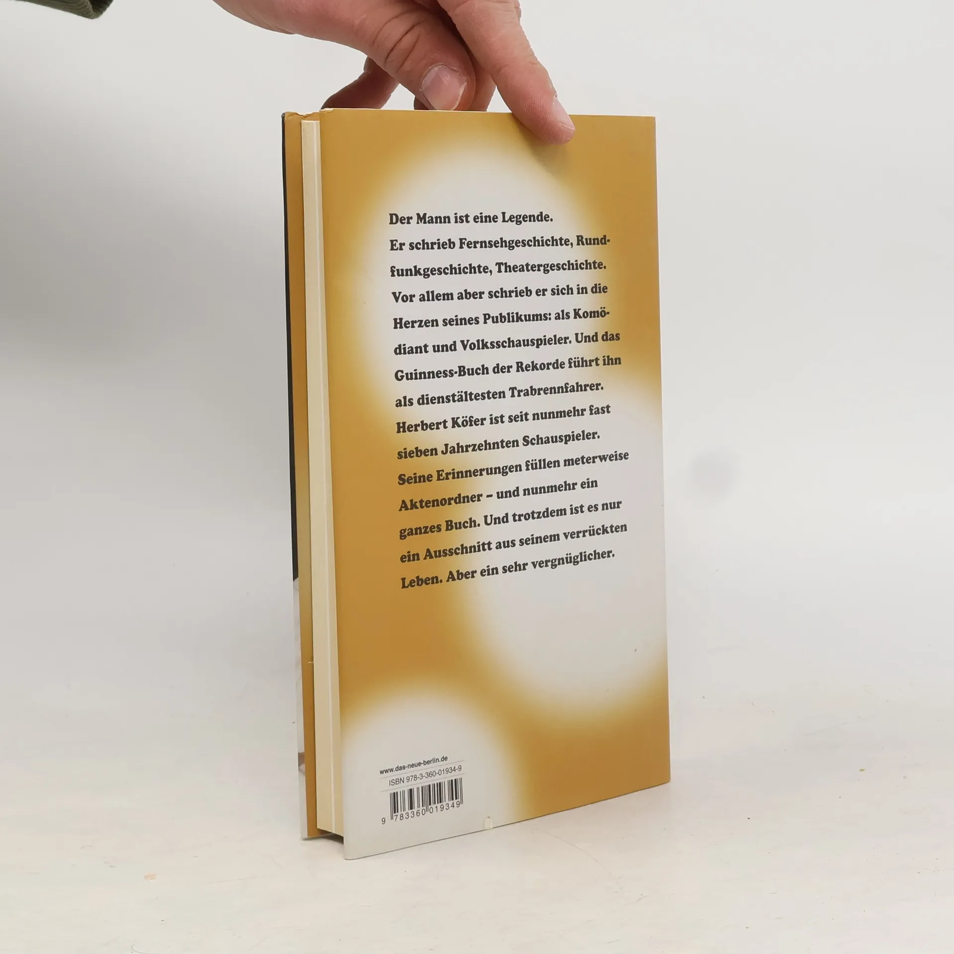'Ich war gern DDR-Bürger' – diesen aus seinem Buch herausgelösten Satz nahmen ihm manche übel; anderen sprach Herbert Köfer damit aus der Seele. In der erweiterten Neuauflage redet der bald 88-Jährige über die Problematik. Natürlich hat die Film- und Fernsehlegende noch weitaus mehr zu erzählen. Humorvoll und pointiert reiht er Episode an Episode seines langen Künstlerlebens. Die Autobiografie zeigt den Schauspieler als Zeitzeugen, berichtet über Kindheit und Jugend in der Weimarer Republik, Krieg und Gefangenschaft, die Nachkriegszeit und den steilen Karriereaufstieg in der DDR. Der Leser lernt den 'privaten' Köfer kennen, den prominenten Staatsbürger, der den Mächtigen der Partei begegnet ist, und natürlich den TV-Star, der allerlei Amüsantes über seine Vorbilder und Kollegen verrät. 'Herbert Köfer hat eine wirklich vergnüglich zu lesende Biografie abgeliefert', schrieb SUPERillu.