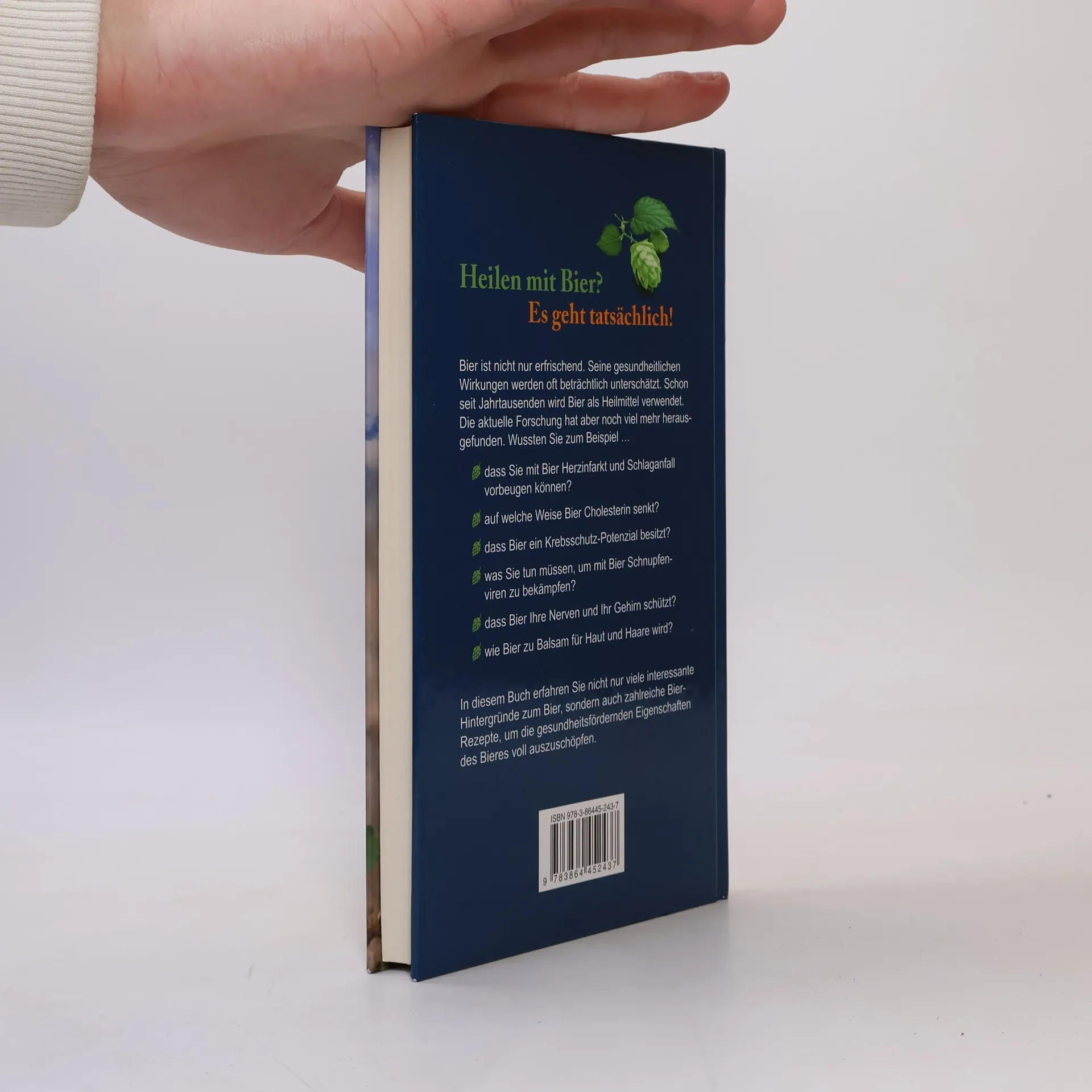 Heilen mit Bier? Es geht tatsächlich! Bier ist nicht nur erfrischend. Seine gesundheitlichen Wirkungen werden oft beträchtlich unterschätzt. Schon seit Jahrtausenden wird Bier als Heilmittel verwendet. Die aktuelle Forschung hat aber noch viel mehr herausgefunden. Wussten Sie zum Beispiel ... dass Sie mit Bier Herzinfarkt und Schlaganfall vorbeugen können? auf welche Weise Bier Cholesterin senkt? dass Bier ein Krebsschutz-Potenzial besitzt? was Sie tun müssen, um mit Bier Schnupfenviren zu bekämpfen? dass Bier Ihre Nerven und Ihr Gehirn schützt? wie Bier zu Balsam für Haut und Haare wird? In diesem Buch erfahren Sie nicht nur viele interessante Hintergründe zum Bier, sondern auch zahlreiche Bier-Rezepte, um die gesundheitsfördernden Eigenschaften des Bieres voll auszuschöpfen.
