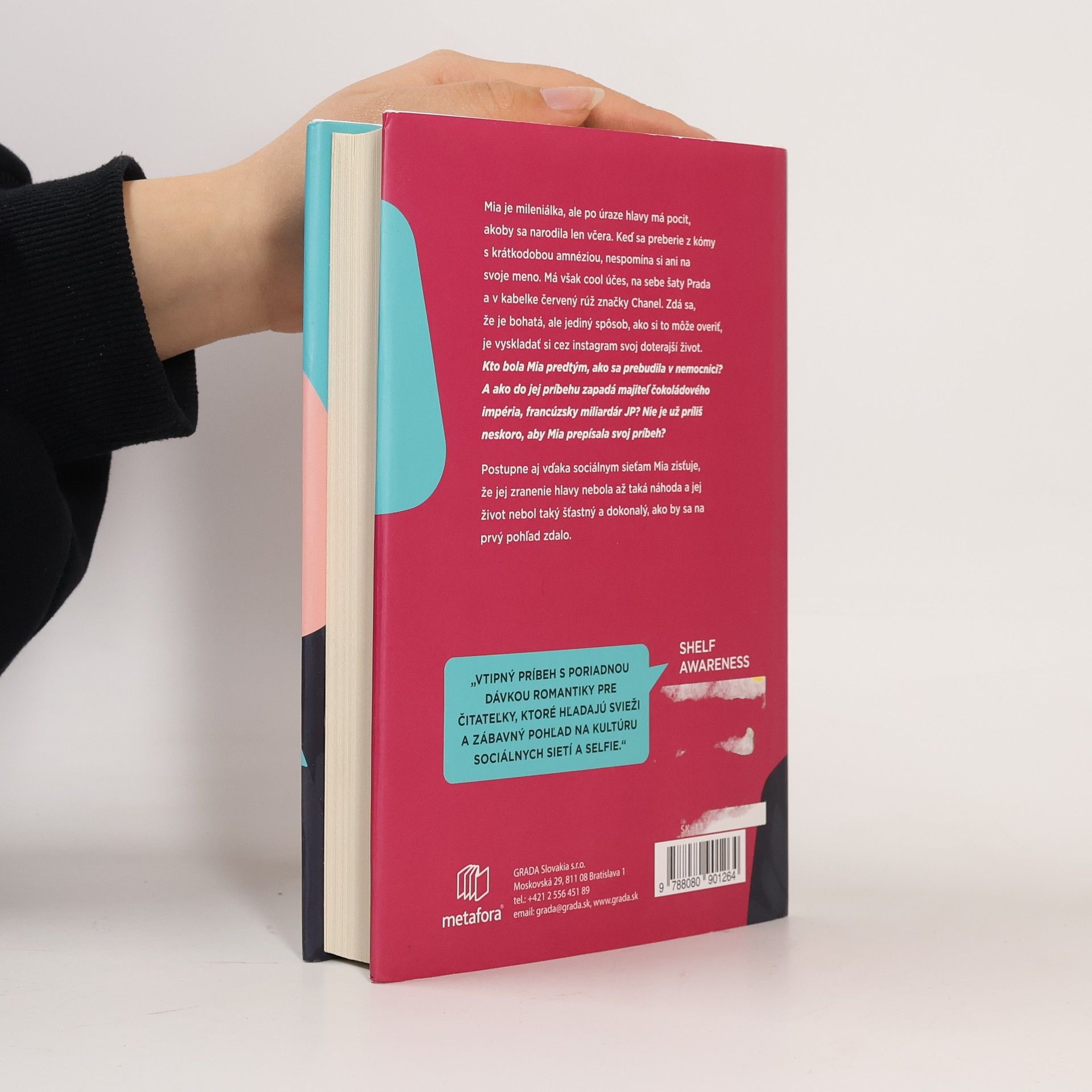 Mia je mileniálka, ale po úraze hlavy má pocit, akoby sa narodila len včera. Keď sa preberie z kómy s krátkodobou amnéziou, nespomína si ani na svoje meno. Má však cool účes, na sebe šaty Prada a v kabelke červený rúž značky Chanel. Zdá sa, že je bohatá, ale jediný spôsob, ako si to môže overiť, je vyskladať si cez Instagram svoj doterajší život. Kto bola Mia predtým, ako sa prebudila v nemocnici? A ako do jej príbehu zapadá majiteľ čokoládového impéria, francúzsky miliardár JP? Nie je už príliš neskoro, aby Mia prepísala svoj príbeh? Postupne aj vďaka sociálnym sieťam Mia zisťuje, že jej zranenie hlavy nebola až taká náhoda a jej život nebol taký šťastný a dokonalý, ako by sa na prvý pohľad zdalo.