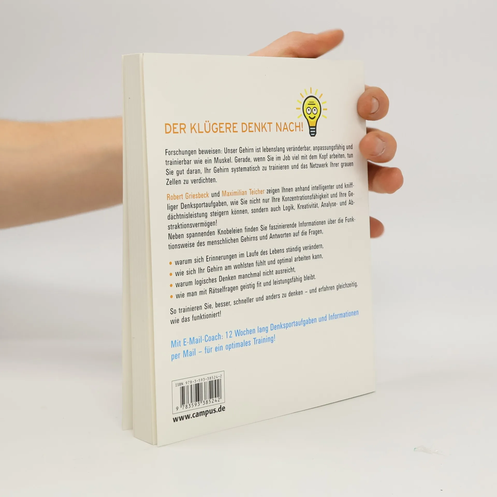 Wer im Job vorwiegend mit dem Kopf arbeitet, tut gut daran, sein Gehirn systematisch zu trainieren. Mit den intelligenten und kniffeligen Aufgaben in diesem Buch lassen sich nicht nur Konzentrationsfähigkeit und Gedächtnis steigern, sondern auch Logik, Kreativität, Abstraktions- und Analysefähigkeit. Vertrackte Knobeleien wechseln sich ab mit faszinierenden Informationen über die Funktionsweise des menschlichen Gehirns. So trainiert der Leser nicht nur, anders, besser und schneller zu denken, sondern erfährt ganz nebenbei auch, wie das funktioniert!