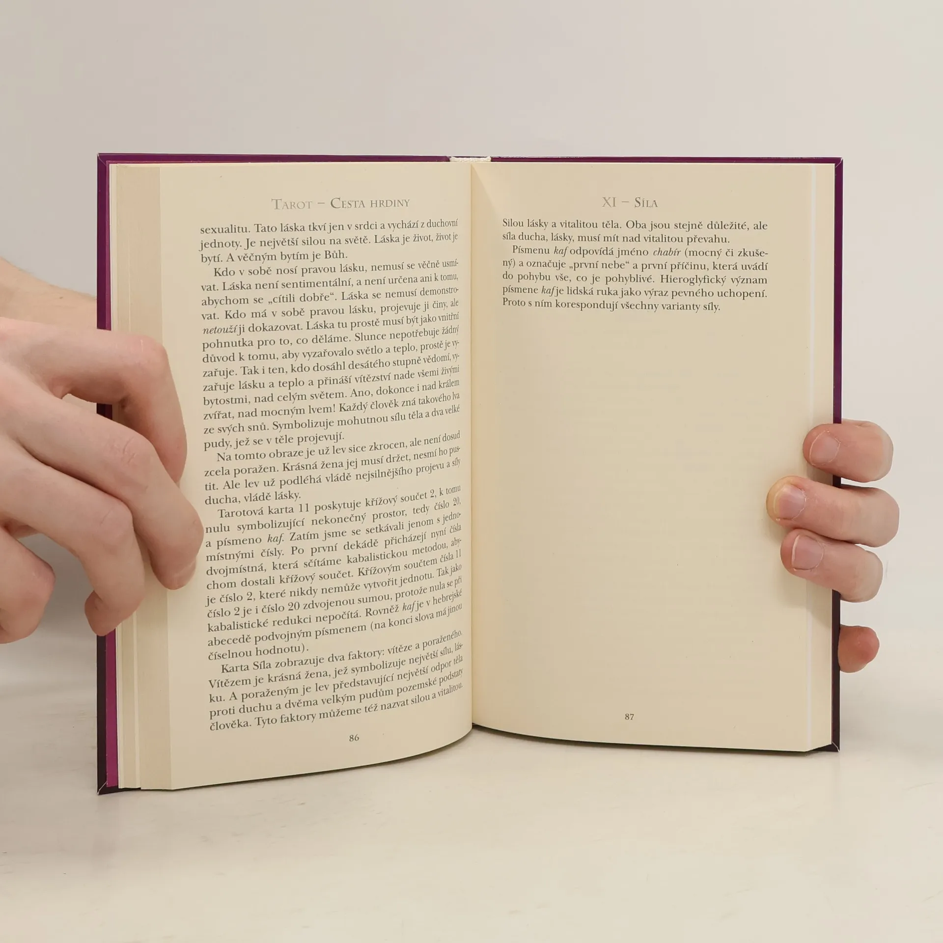 Fascinující putování prostřednictvím obrazů Velké arkány plné odvěkých zkušeností lidstva a objevných vědomostí. Elisabeth Haichová, první dáma tarotu, legendární mistryně jógy, autorka mystického světového bestselleru Zasvěcení a největší opravdu zasvěcená žena Západu za posledních sto let přináší neuvěřitelný vhled do podstaty člověka. To vše za přispění pradávné síly tarotu… Tarot je prastarou iniciační cestou a esoterickým systémem zasvěcení pomocí magických duševních obrazů „Cesta hrdiny“ představuje spirituální životní pouť každého člověka Tajemství Velké arkány tarotu spočívá v tom, že jejích 22 karet představuje dvaadvacet tajných duchovních bran k zasvěcení. Tato klasická forma nás zavádí do hlubin lidské duše. Pomocí symbolického zrcadlení motivů karet Elisabeth Haichová mistrně a podrobně osvětluje náš osud a životní úkoly. Esotericko-spirituální tarot slouží vývoji naší osobnosti. Děje se tak prostřednictvím magických duševních výjevů Velké arkány slavné rosenkruciánské Wirthovy tarotové sady, jejíž barevné vyobrazení kniha obsahuje. Symbolický výklad Elisabeth Haichové se dá samozřejmě použít i na jiné verze tarotu (například na Crowleyův nebo na Ryder-Waiteův), neboť symboly jsou univerzálními obrazy v proměnlivých barvách a nuancích, jaké nabízí sám život.