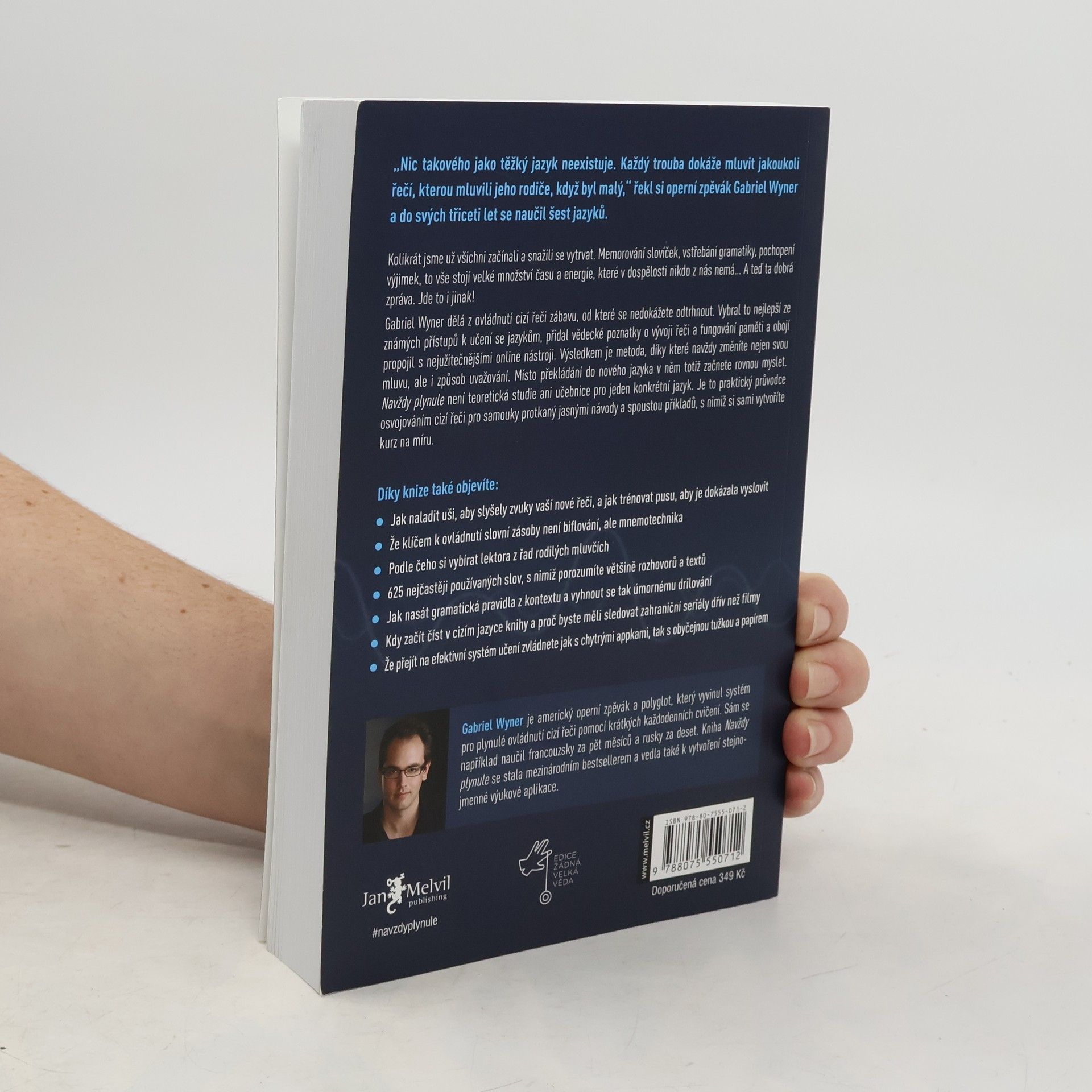 Vzdali jste učení se cizích jazyků? Nemáte čas a ještě k tomu vás úmorná gramatická cvičení nudí? A když už do hlavy něco dostanete, stejně to zase brzy zapomenete? Navždy plynule vaši skepsi vyléčí! Ukáže vám, jak se cizí řeč naučit efektivně, rychle, zábavně a natrvalo. Záchrana, že? Operní pěvec a polyglot Gabriel Wyner není pouhým teoretikem – již ve třiceti letech mluvil plynně šesti jazyky, které se zvládl naučit sám. A každý z nich navíc ovládl v řádu měsíců. Bohaté zkušenosti pak přetavil do nové učební metody pro samouky, která spočívá v krátkých denních trénincích, propojuje to nejužitečnější ze známých lingvistických přístupů s poznatky o fungování mozku a nezapomíná ani na pomoc zdarma dostupných online nástrojů. Navždy plynule vás naučí, jak naladit uši na nové zvuky, jak donutit ústa ke všem novým akrobaciím a jak si kousek po kousku uložit do dlouhodobé paměti vše: od jednoduchých slovíček až po složitá gramatická pravidla. A buďte bez obav, nuda přitom rozhodně nehrozí. Naopak, zábava je klíčem k úspěchu. Takže tentokrát si hru s cizími jazyky užijete a konečně se naučíte vyhrávat! Enfin! Endlich! ?????! Finally! Finalmente! Végre! Endelig! Nareszcie! În cele din urmă! ...