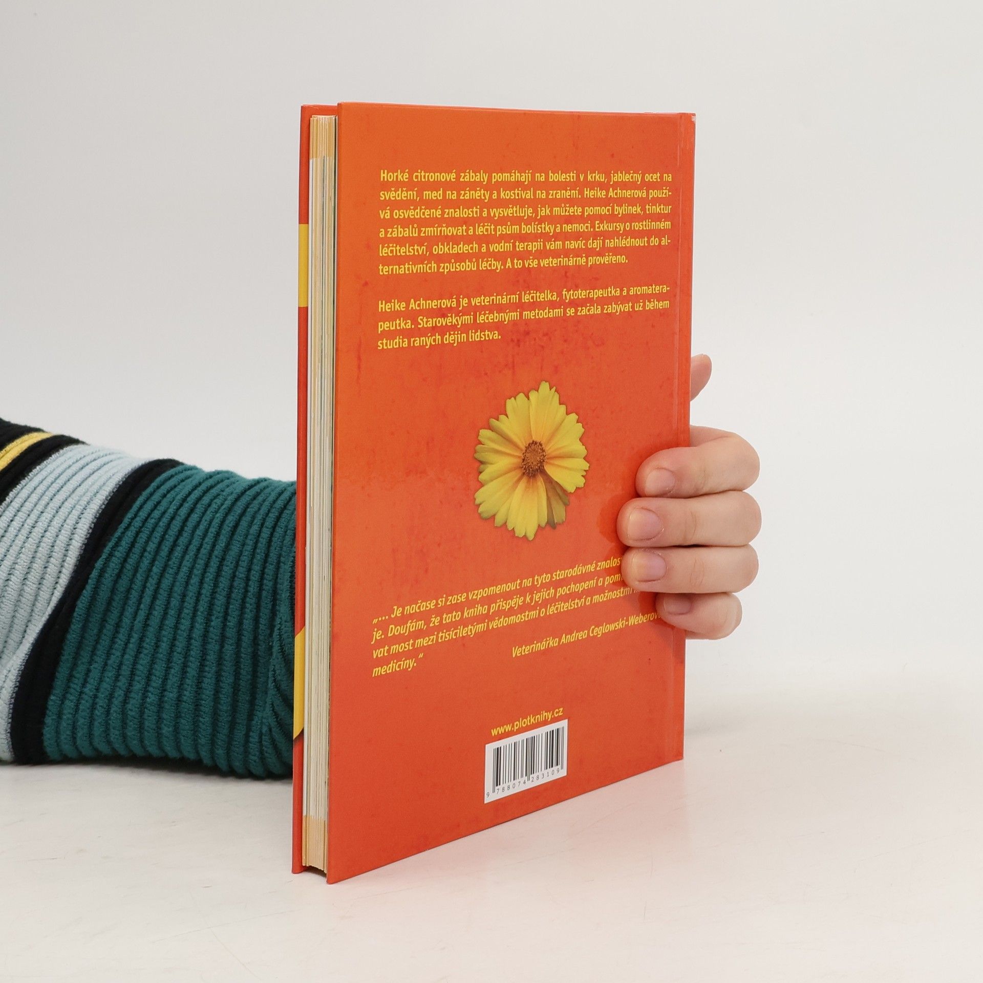 Horké citronové zábaly pomáhají na bolesti v krku, jablečný ocet na svědění, med na záněty a kostival na zranění. Heike Achnerová používá osvědčené znalosti a vysvětluje, jak můžete pomocí bylinek, tinktur a zábalů zmírňovat a léčit psům bolístky a nemoci. Exkursy o rostlinném léčitelství, obkladech a vodní terapii vám navíc dají nahlédnout do alternativních způsobů léčby. A to vše veterinárně prověřeno. Heike Aichnerová je veterinární léčitelka, fytoterapeutka a aromaterapeutka. Starověkými léčivými metodami se začala zabývat už během studia raných dějin lidstva. „... Je načase si zase vzpomenout na tyto starodávné znalosti a využívat je. Doufám, že tato kniha přispěje k jejich pochopení a pomůže vybudovat most mezi tisíciletými vědomostmi o léčitelství a možnostmi moderní medicíny.“ Veterinářka Andrea Ceglowski-Weberová