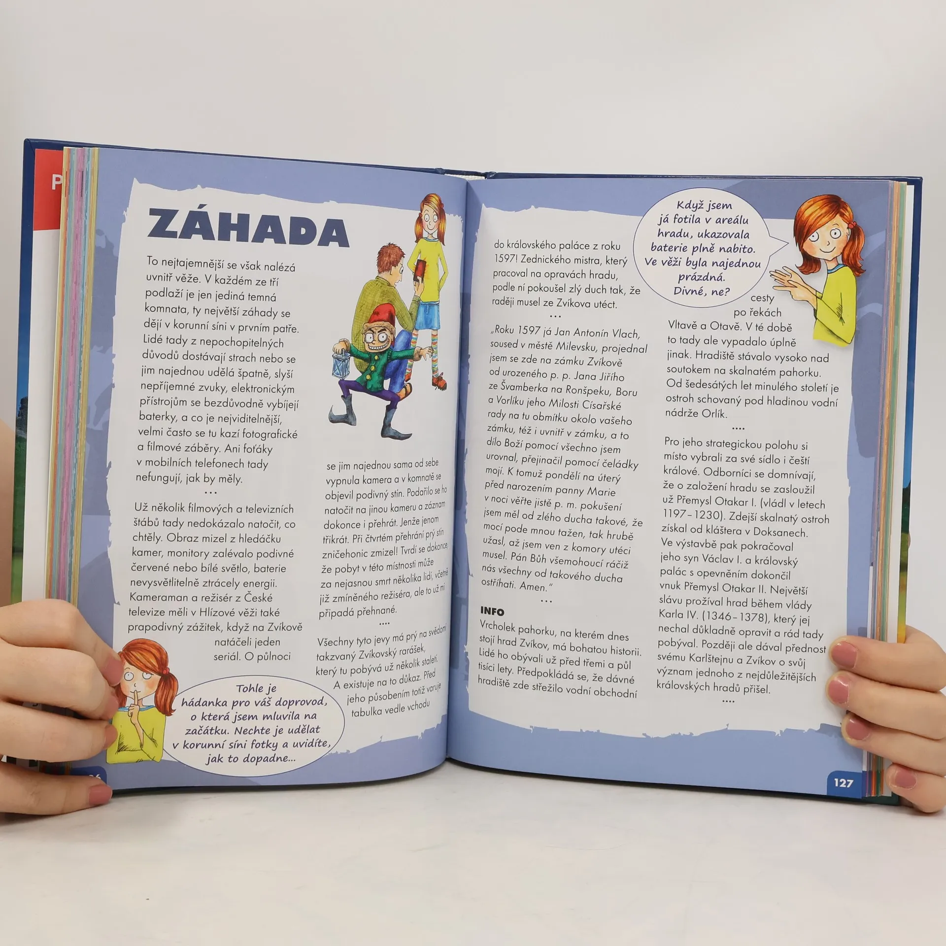 Navštivte dvacet tajemných míst naší vlasti. Zatímco pro dospělé představuje knižní vydání televizního pořadu Toulavá kamera vítaného pomocníka při cestách naší vlastí, na malé tuláky se dosud tak trochu zapomínalo. Česká televize a nakladatelství freytag & berndt se tento handicap rozhodly napravit a pro dětského čtenáře připravily jedinečnou publikaci, u níž se děti rozhodně nudit nebudou. Spolu se zvídavou průvodkyní, malou holčičkou s příhodnou přezdívkou Toulavka, se totiž vypraví na dvacet nejtajemnějších míst naší republiky – na strašidelné hrady (Trosky, Velhartice, Rožmberk, Potštejn aj.), do magických hvozdů (např. Rejvíz, Radhošť, šumavská jezera, Obří důl) nebo temného podzemí (Jihlava, Kutná Hora, jeskyně Býčí skála). Kniha, kterou doplňují nádherné ilustrace, zároveň obsahuje množství doplňujících zajímavostí z historie, zeměpisu či kultury, a děti tak získají nejen tip, kam vyrazit na výlet, ale zároveň i silnou motivaci k dalšímu poznávání Čech, Moravy a Slezska.