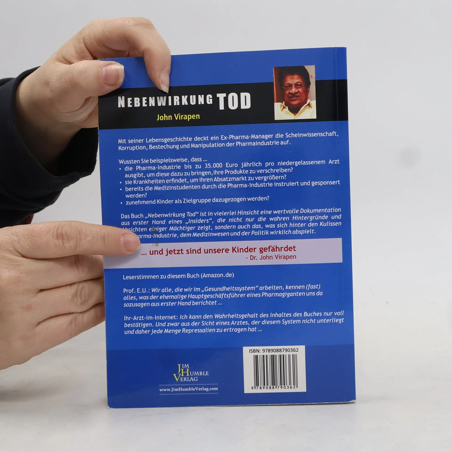 Ein Ex-Pharma-Manager enthüllt in seiner Lebensgeschichte die Korruption und Verschleierung in der Pharmaindustrie. Er berichtet, dass große Pharmakonzerne jährlich 35.000 Euro pro Arzt ausgeben, um deren Verschreibungen zu beeinflussen. Zudem werden angesehene Wissenschaftler und Ärzte gezielt mit teuren Reisen, Geschenken und Geld bestochen, um positiv über Medikamente mit schwerwiegenden Nebenwirkungen zu berichten. Über 75 Prozent der führenden Mediziner erhalten Gelder von der Pharmaindustrie, und es gibt Medikamente, deren Zulassung durch Bestechung erwirkt wurde. Die Industrie erfindet Krankheiten und bewirbt sie in Marketingkampagnen, um den Absatz ihrer Produkte zu steigern. Viele neu zugelassene Medikamente haben keine Langzeitstudien, sodass die Auswirkungen einer dauerhaften Einnahme unbekannt sind. Besonders besorgniserregend ist, dass die Pharmaindustrie zunehmend Kinder ins Visier nimmt. Dieses außergewöhnliche Buch stammt von einem hochrangigen Pharmamanager, der für Betrug und Irreführung verantwortlich war und Produkte auf den Markt brachte, selbst wenn Patienten starben. Er handelte für Unternehmen, die sich ethisch geben, aber dennoch gefährliche Mittel verkaufen, um Umsatz und Gewinn zu maximieren, ohne Rücksicht auf die Folgen. John Virapens Insiderbericht ist wahr, aktuell und selbst erlebt und soll Leser und ihre Familien aufrütteln und schützen.