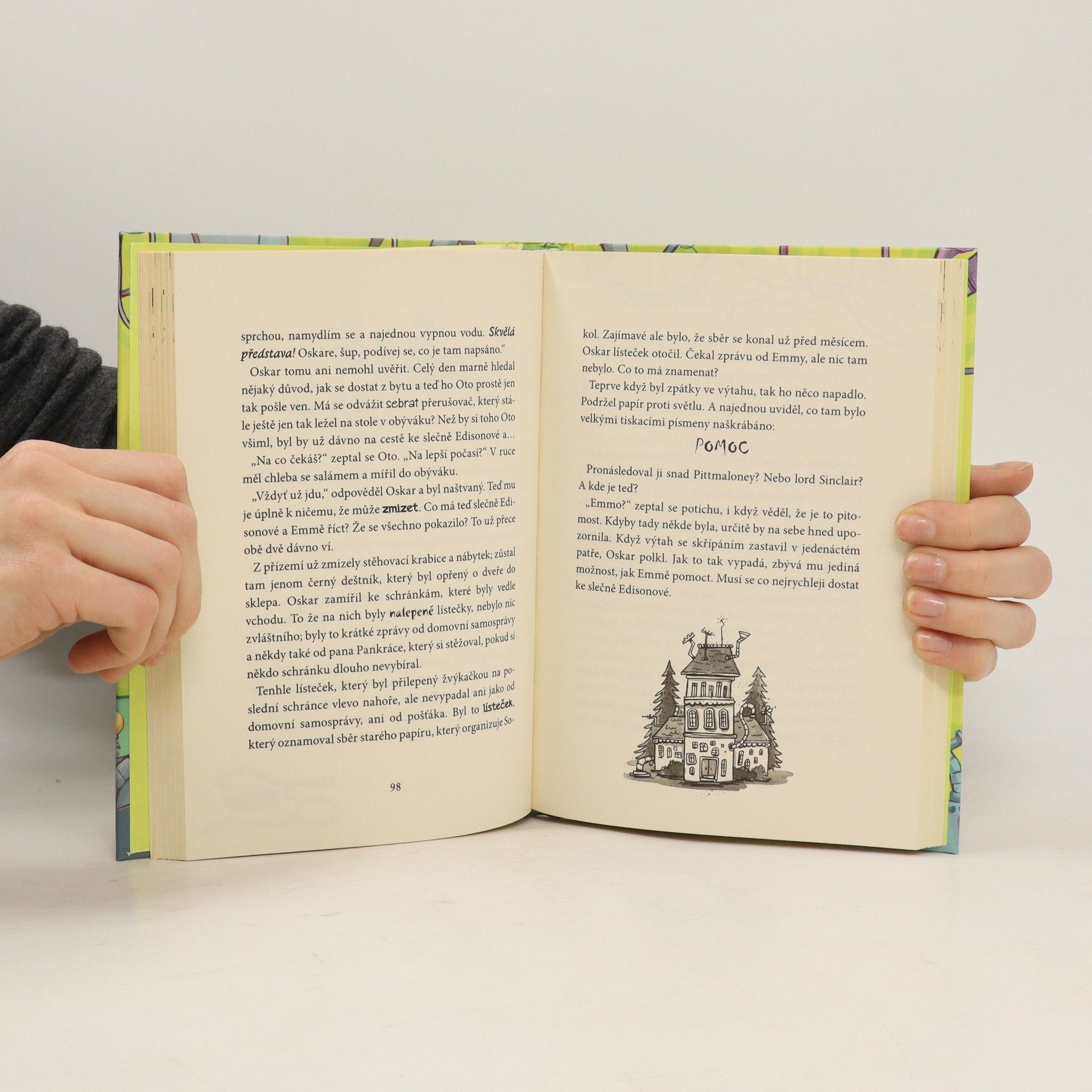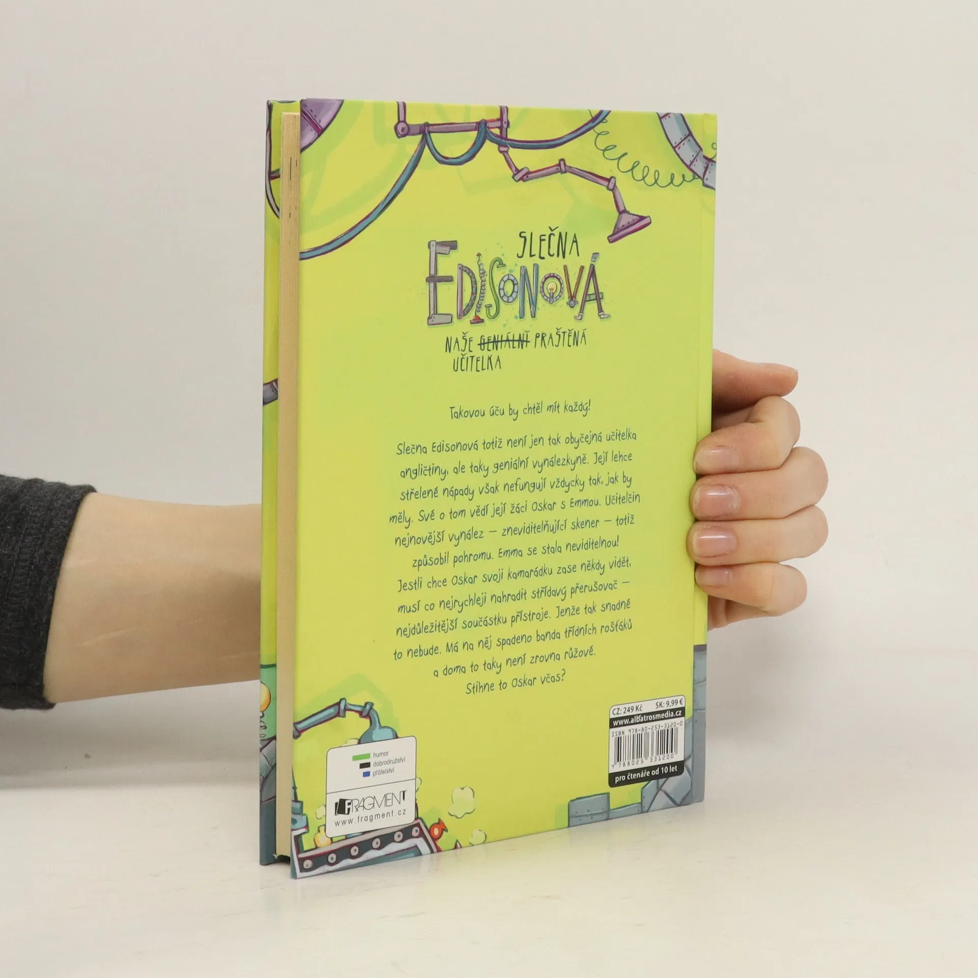 Slečna Edisonová totiž není jen tak obyčejná učitelka angličtiny, ale taky geniální vynálezkyně. Její lehce střelené nápady však vždycky nefungují tak, jak by měly. Své o tom vědí její žáci Oskar s Emou. Učitelčin nejnovější vynález – zviditelňující skener – totiž způsobil pohromu. Ema se stala neviditelnou! Jestli chce Oskar svoji kamarádku zase někdy vidět, musí co nejrychleji nahradit střídavý přerušovač – nejdůležitější součástku přístroje. Jenže tak snadné to nebude. Má na něj spadeno banda třídních rošťáků a doma to taky není zrovna růžové. Stihne to Oskar včas?