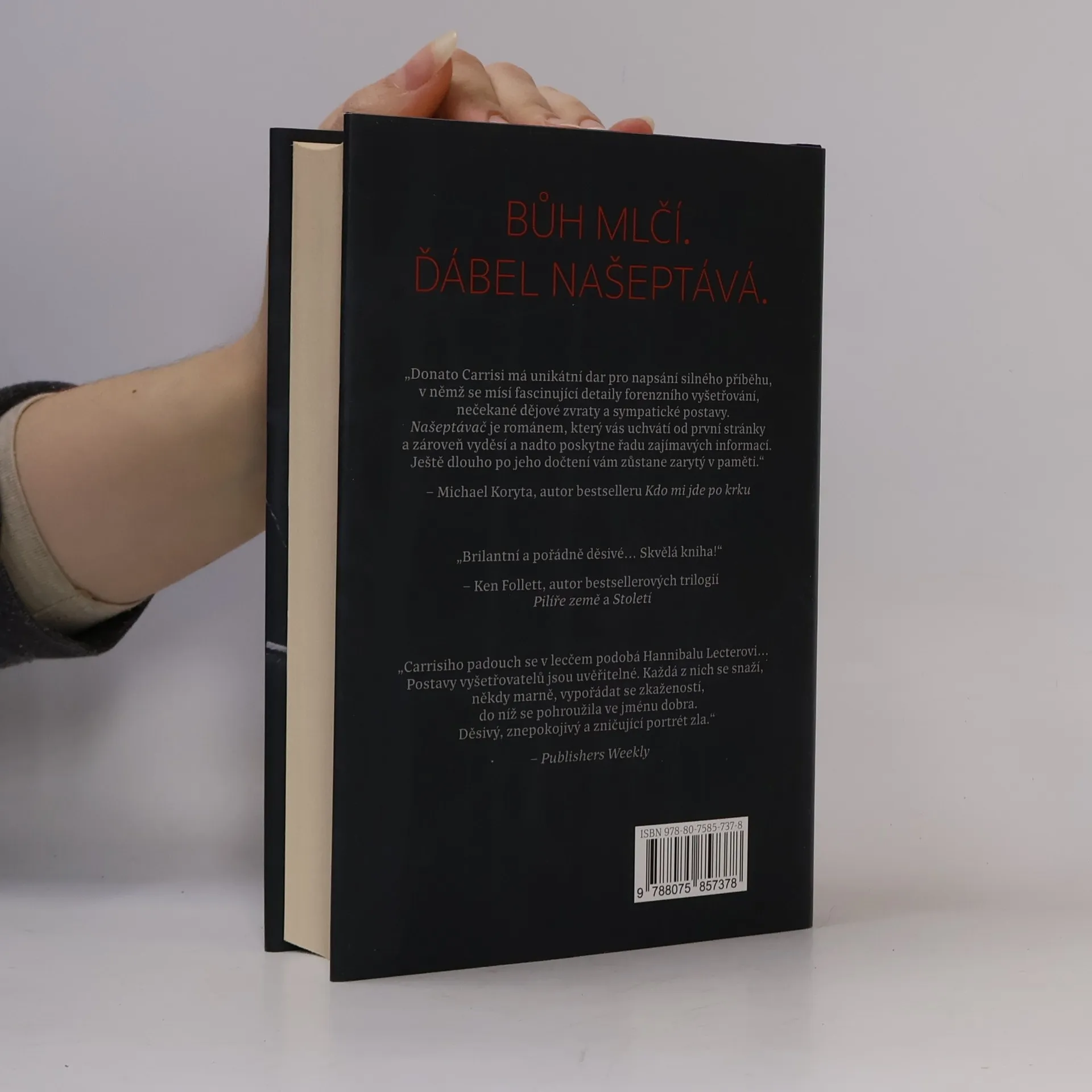 V lese je nalezeno pohřbených šest useknutých rukou. Jsou uspořádány do tajemného kruhu a zdá se, že patří chybějícím dívkám mezi 8 a 13 lety. Zbytky těl ale nikde nalezeny nebyly. Případ dostal kriminolog Goran Gavila. Nerudný, vzpurný muž musí spolupracovat s mladou policistkou Milou Vasquezovou, která má pověst odborníka na pohřešované děti. Má totiž svou vlastní tragickou minulost, která ji zanechala poškozenou a neschopnou něco cítit. Je to výbušný, ale podivným způsobem fungující vztah. A když v lese odhalí další tajemství, stále víc mají své životy navzájem v rukou. Úchvatný literární thriller, který smetl Itálii. Našeptávač rozpoutal podobnou bouři jako romány Stiega Larssona. Tento román je výjimečný - provokuje, je inteligentní a nepoddajný.