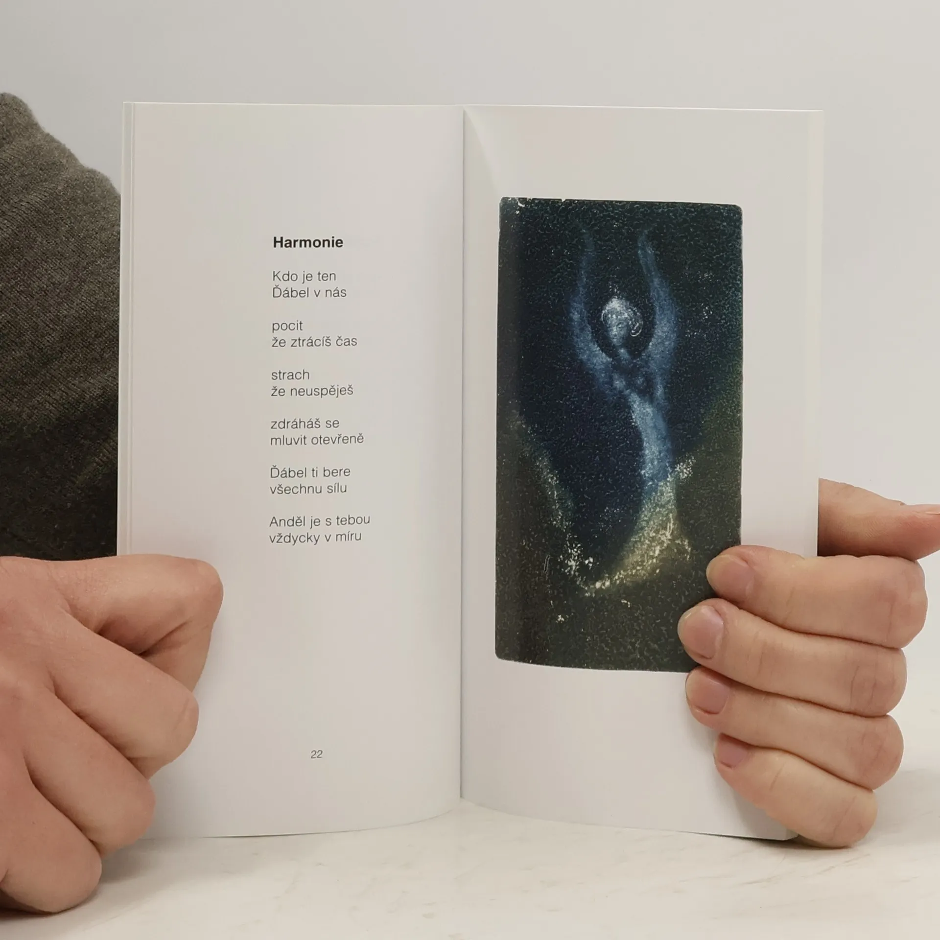 Sbírka básniček vás potěší, ať už jste v jakékoli situaci. Autorka totiž zvolila nenáročnou formu veršů podobných moudrým úslovím, kterými komentuje všední zážitky i zapeklité otázky mezi nebem a zemí. Nečekejte ironii ani melancholii, s vyrovnaným nadhledem vám pomůže do stavu nirvány, i když se ocitnete „ na vlásku“ jako ve stejnojmenné básni: „ Dá se sáhnout na lásku? / Zkus to visí na vlásku / Ať mě vezme ďas/ Já spálila se zas.“