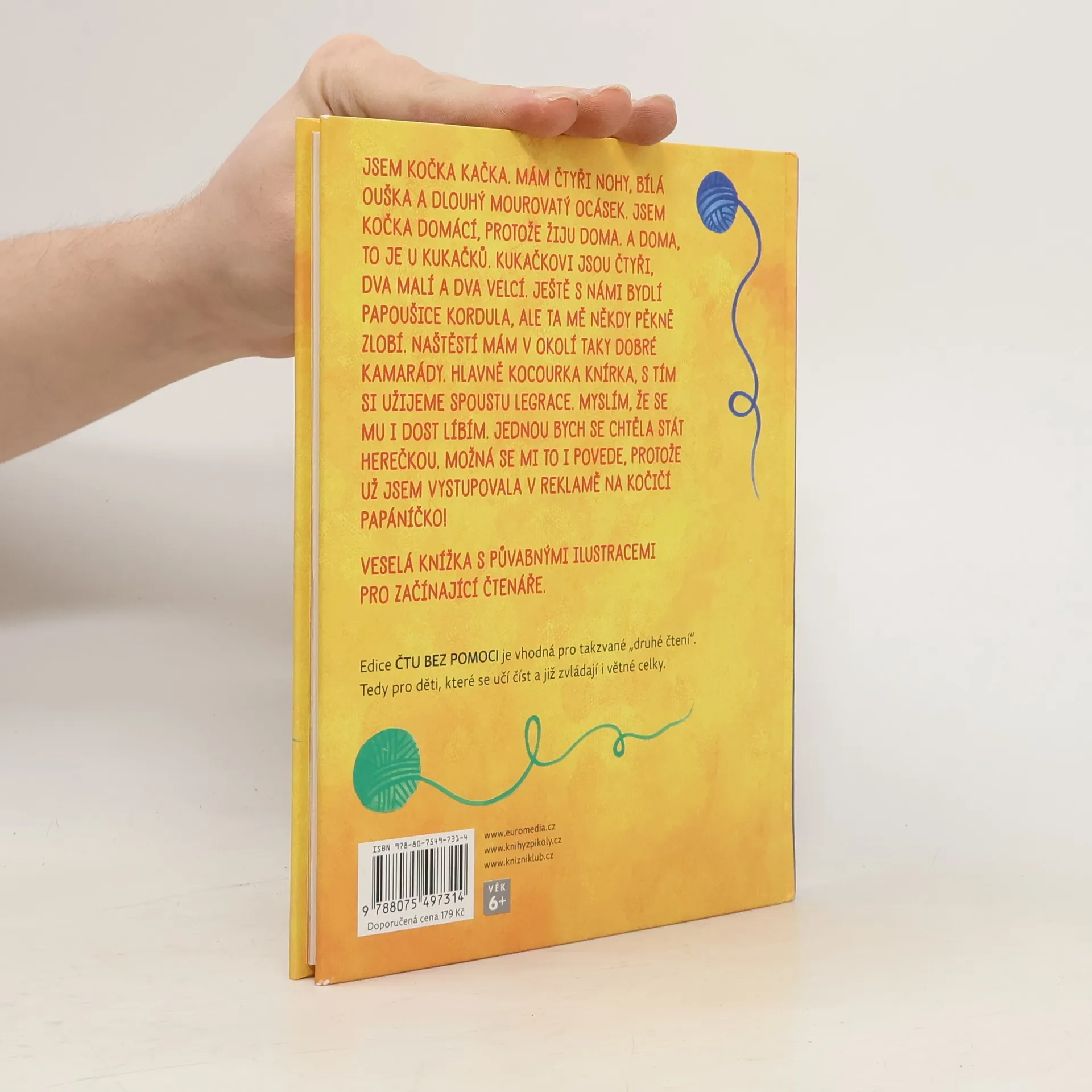 Veselé příhody kočky Kačky, která zažívá všední i nevšední dobrodružství se svou rodinou Kukačkových i se zvířecími kamarády ze sousedství. V první části knihy nás Kačka seznamuje s rodinou, do níž kromě táty, mámy a dvou dětí patří i papoušek jménem Kordula, ve druhé části sní Kačka o tom stát se herečkou, a skutečně nakonec zazáří v televizní reklamě na kočičí granule. Kniha uznávané české autorky, vyprávěná vtipným a srozumitelným jazykem, je ideální pro děti, které už jsou schopné číst jednodušší texty bez pomoci.