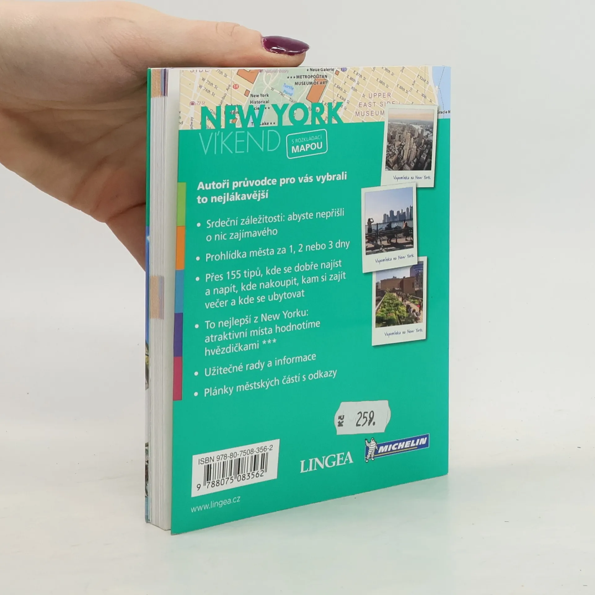 Navštivte zemi filmových hvězd a objevte místa, kde se natáčely slavné filmy a seriály. Prozkoumejte město s newyorskými dobrovolníky nebo si vydejte na vlastní pěst k vyhlášeným lokalitám. Užijte si panoramatické výhledy z vrtulníku či autobusu a objevte nábřeží řeky Hudson. Zatoulejte se v Central Parku, navštivte open air koncerty a balety zdarma, nebo se vydejte na místa, kde se procházeli slavní spisovatelé a užijte si jazzové večery. Nezapomeňte ochutnat místní speciality a využít příležitosti k nákupům během hlavních výprodejů. New York nabízí něco pro každého. Průvodce zahrnuje rozkládací mapu města a plán MHD. Obsahuje také mapky těchto částí: Lower Manhattan, Tribeca a Soho, Lower East Side, Little Italy, Nolita, Greenwich Village a Brooklyn. Jazz, i když se zrodil v New Orleans, v New Yorku vzkvétá díky významným skladatelům. Město nabízí všechny jazzové styly, od konvenčních v Lincoln Center po open air festivaly a unikátní kluby. New York je rovněž domovem gospelu, hip-hopu a rapperů. Nenechte si ujít žádnou zajímavost a objevte New York za 3 dny s více než 155 tipy na skvělé jídlo, pití, nákupy, večerní zábavu a ubytování.