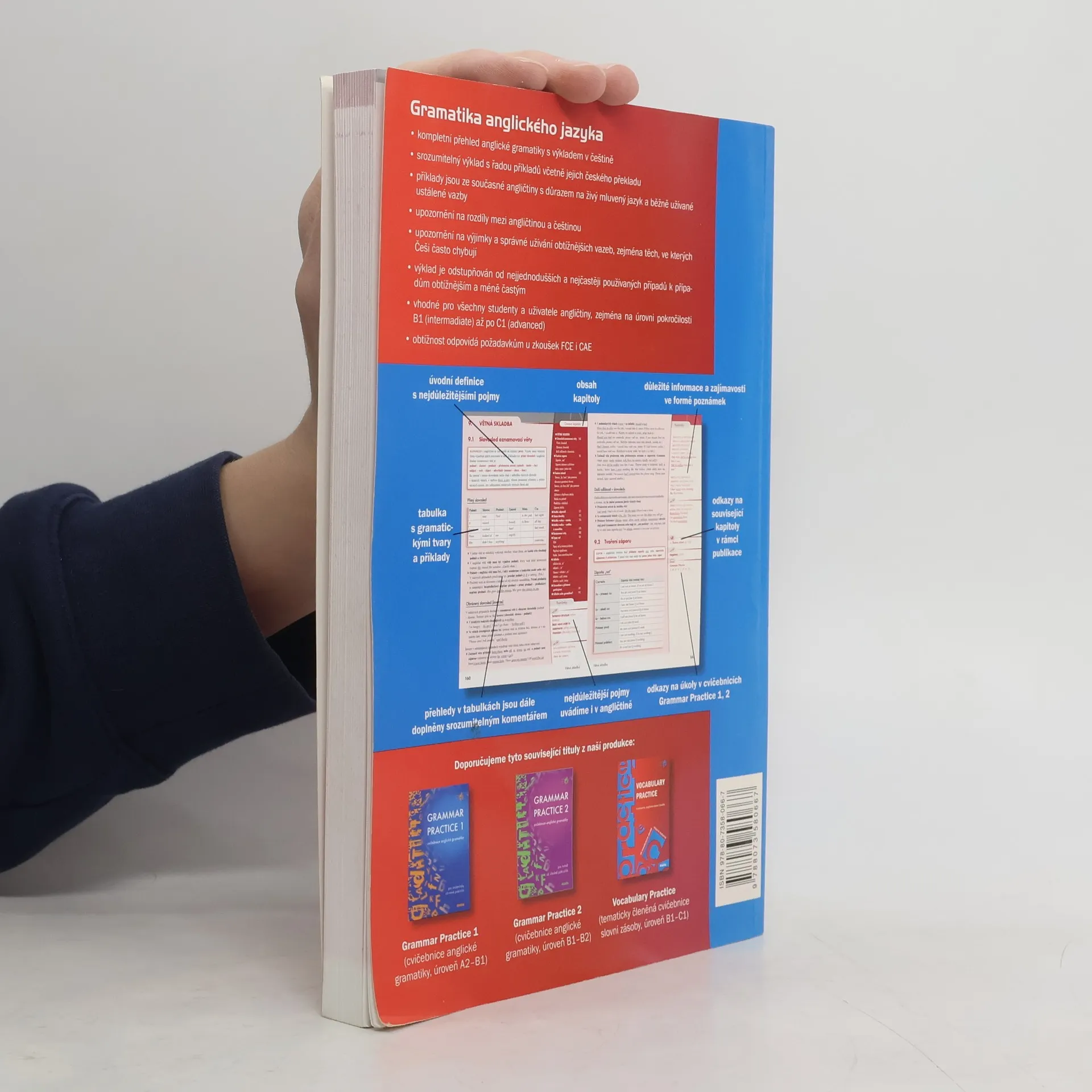Ucelený přehled gramatiky anglického jazyka - srozumitelné a přehledné zpracování - všechny důležité gramatické jevy jsou podrobně vysvětleny v českém jazyce a doplněny množstvím konkrétních příkladů z živé mluvené angličtiny - kniha je doplněna přehlednými tabulkami s gramatickými tvary a jejich použitím, dále odkazy na odpovídající úkoly v cvičebnicích Grammar Practice 1, 2 a přílohovou částí, kterou mj. tvoří přehledy nepravidelných a frázových sloves s příklady jejich použití - publikace je určena všem, kteří se věnují studiu angličtiny.