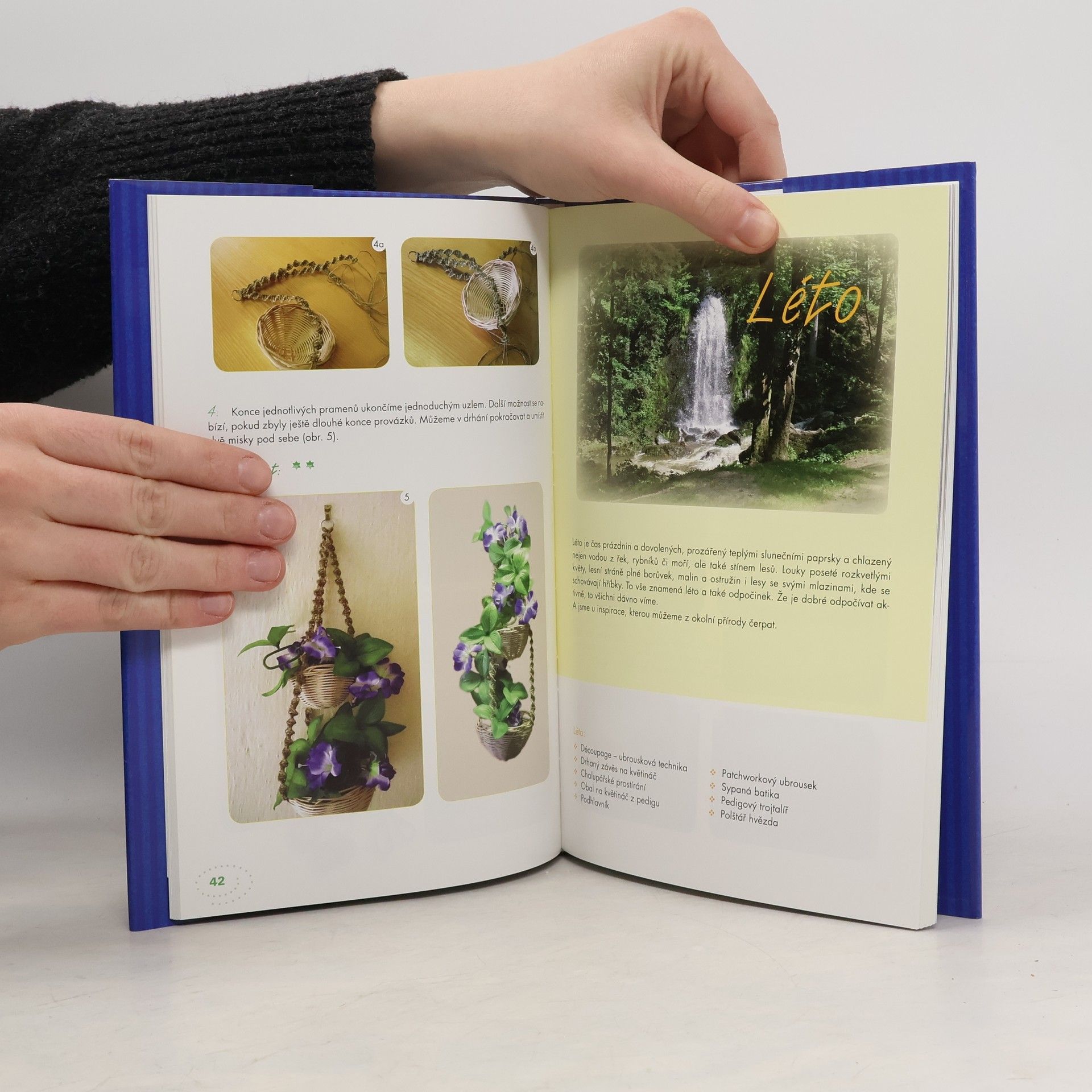 Každé roční období má své kouzlo. Každé roční období má své slavnosti a svátky, svou náladu. A také ke každému ročnímu období můžeme vyrábět jiné výrobky a ozdoby. Kniha je rozdělena podle ročních období a nabízí desítky nápadů na ruční výrobu užitečných a okrasných předmětů těmito technikami: drhání, pedig, patchwork, háčkování, pletení. Veškeré postupy jsou vysvětleny a ukázány krok po kroku na fotografiích.