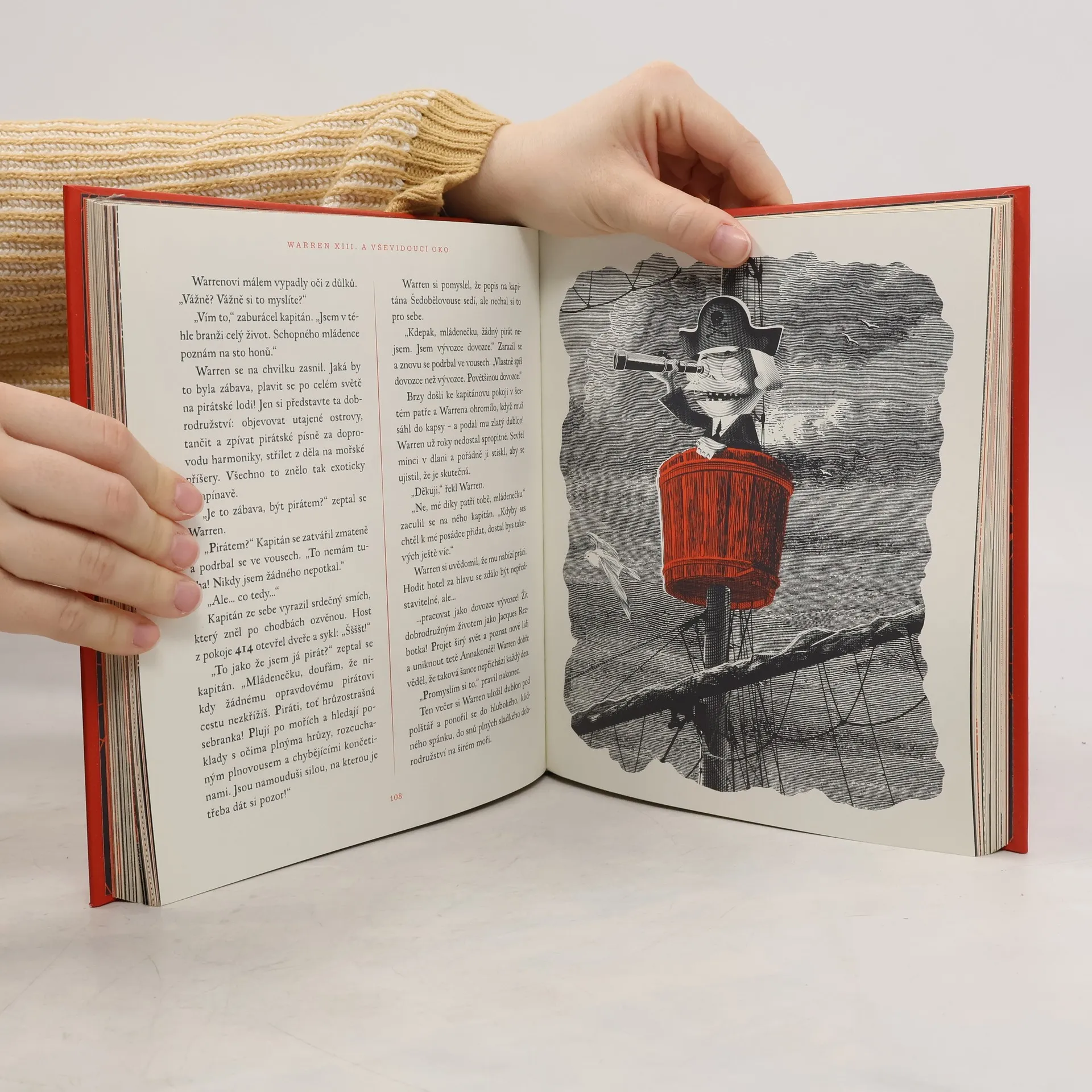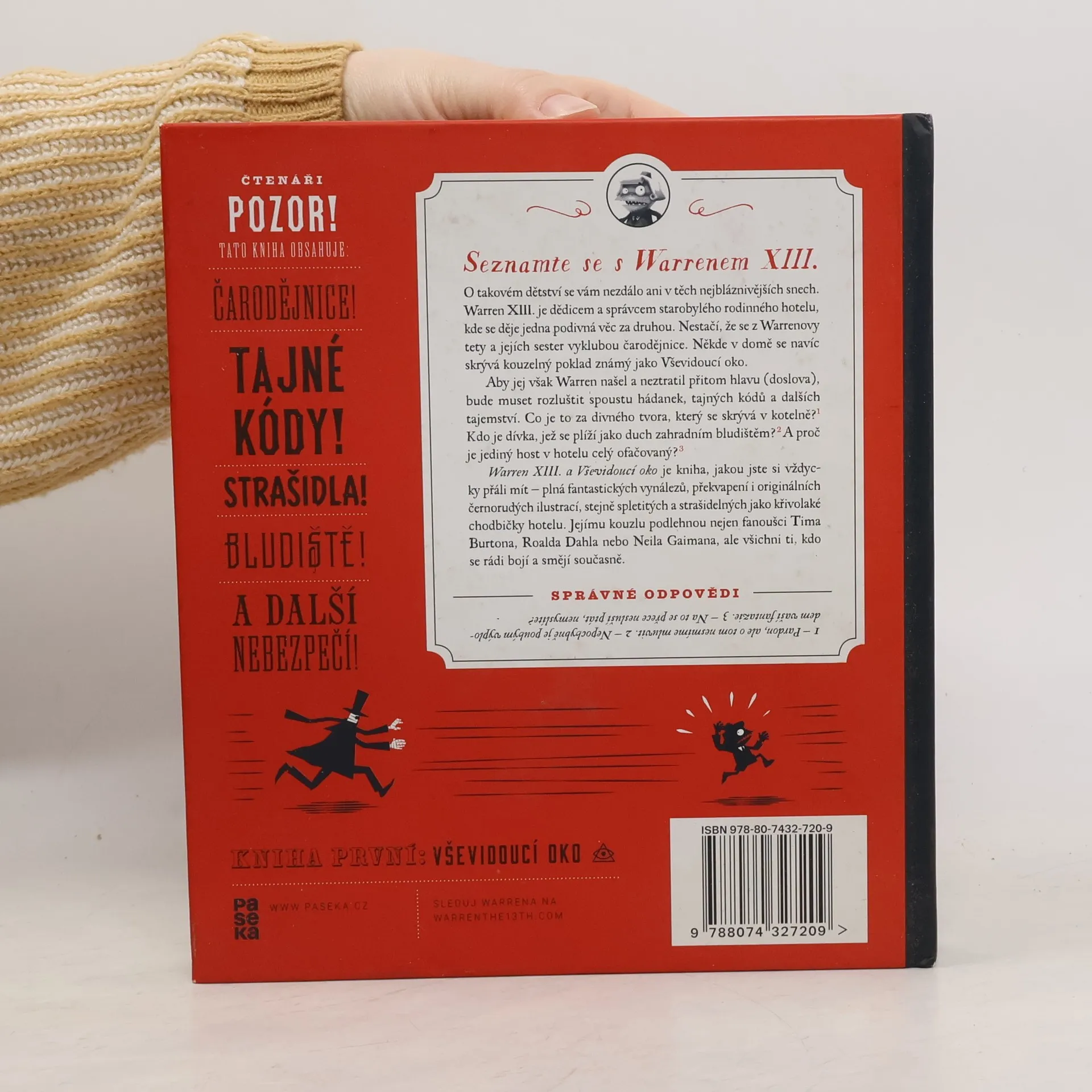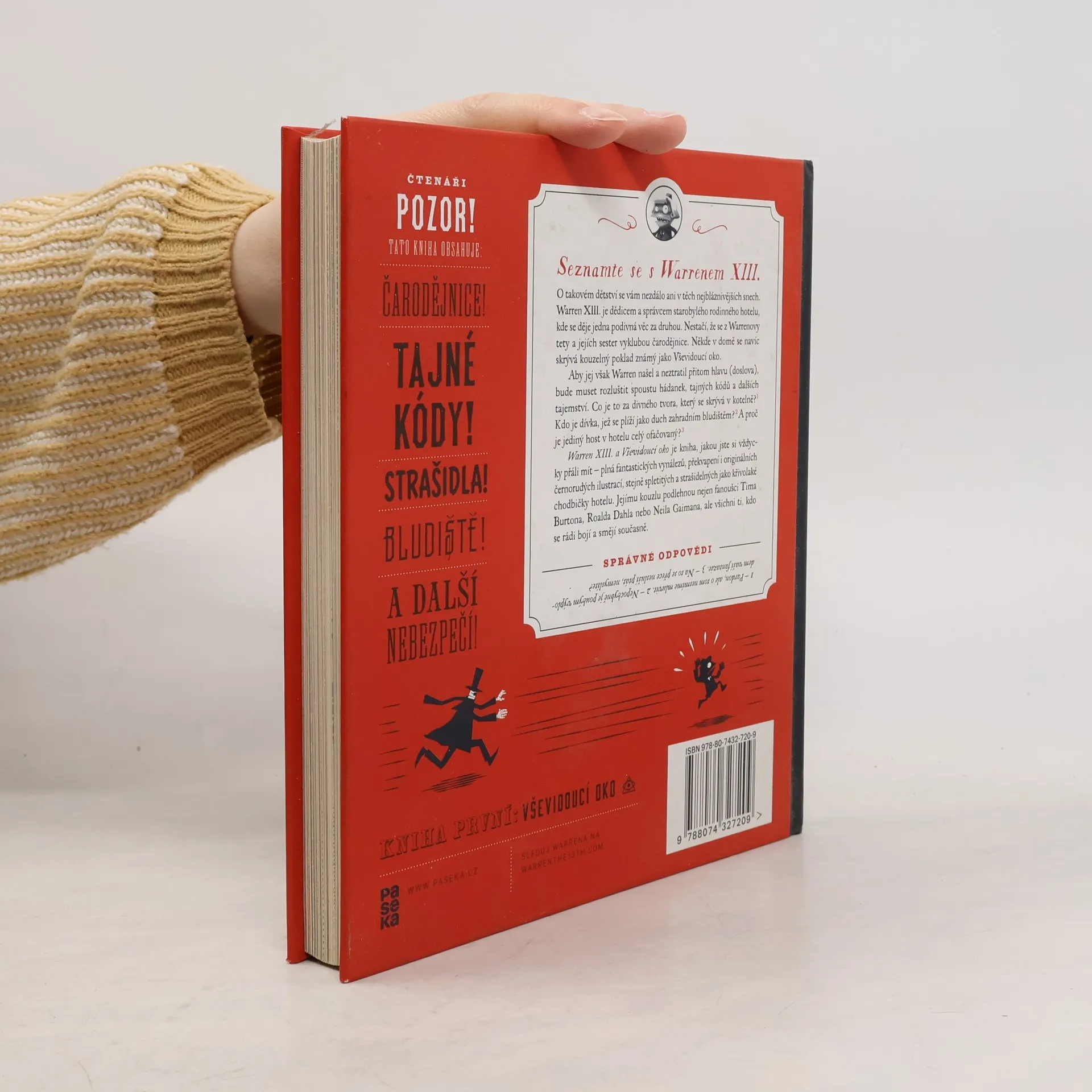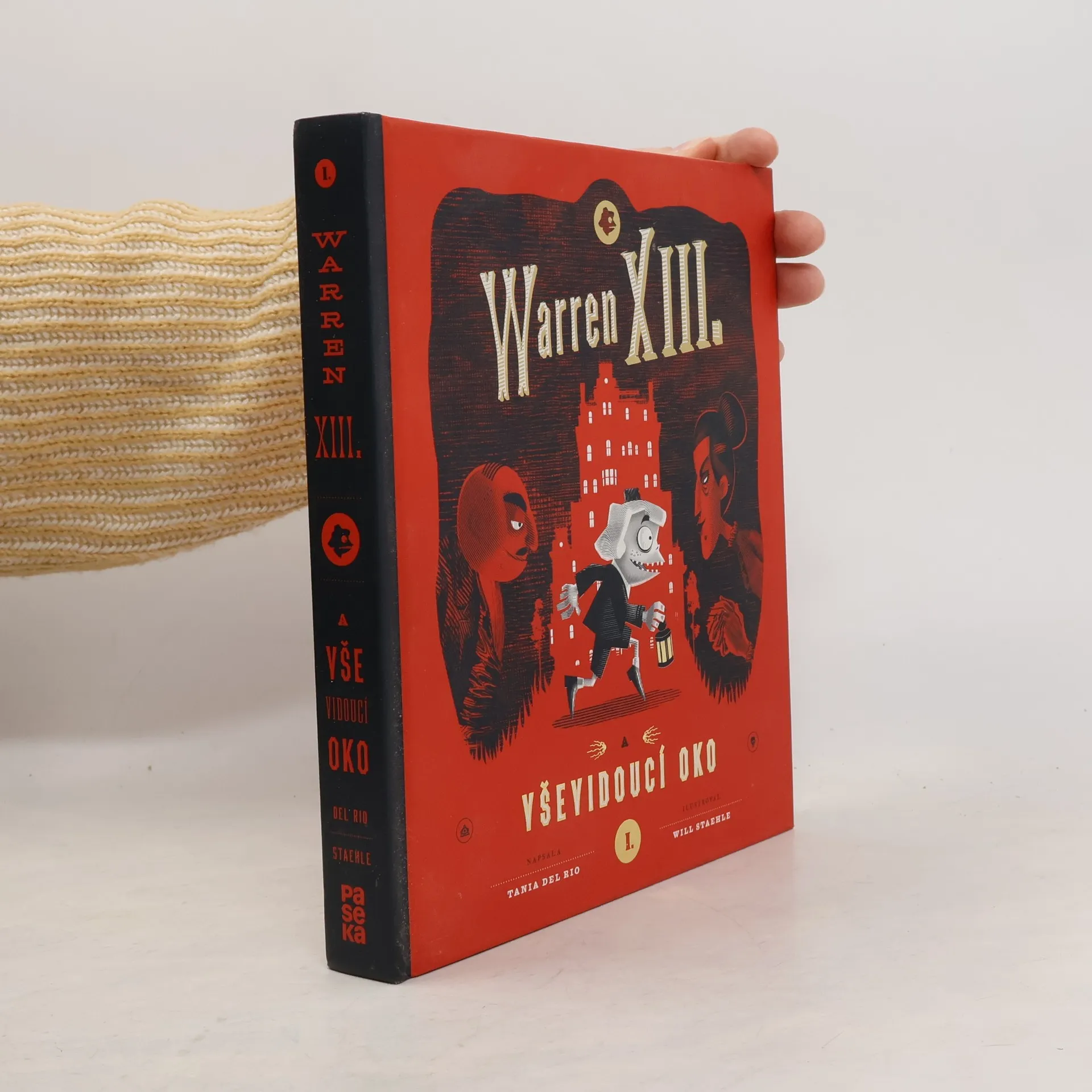 O takovém dětství se vám nezdálo ani v těch nejbláznivějších snech. Warren XIII. je dědicem a správcem starobylého rodinného hotelu, kde se děje jedna podivnější věc za druhou. V kotelně žije tvor se spoustou chapadel, zahradním bludištěm se plíží přízračná dívka, ze sester Warrenovy tety se vyklubou čarodějnice a mezi záhadnými hosty narazíte třeba na muže, který je od hlavy až k patě celý ofačovaný. Někde v domě se navíc skrývá kouzelný poklad známý jako Vševidoucí oko. Aby jej však Warren našel a neztratil přitom hlavu (doslova), bude muset rozluštit spoustu hádanek, tajných kódů a dalších tajemství. Warren XIII. a Vševidoucí oko je kniha, jakou jste si vždycky přáli mít – plná fantastických vynálezů, překvapení i originálních černo-rudých ilustrací, stejně spletitých a strašidelných jako křivolaké chodbičky hotelu. Jejímu kouzlu podlehnou nejen fanoušci Tima Burtona, Roalda Dahla nebo Neila Gaimana, ale všichni ti, kdo se rádi bojí a smějí současně.