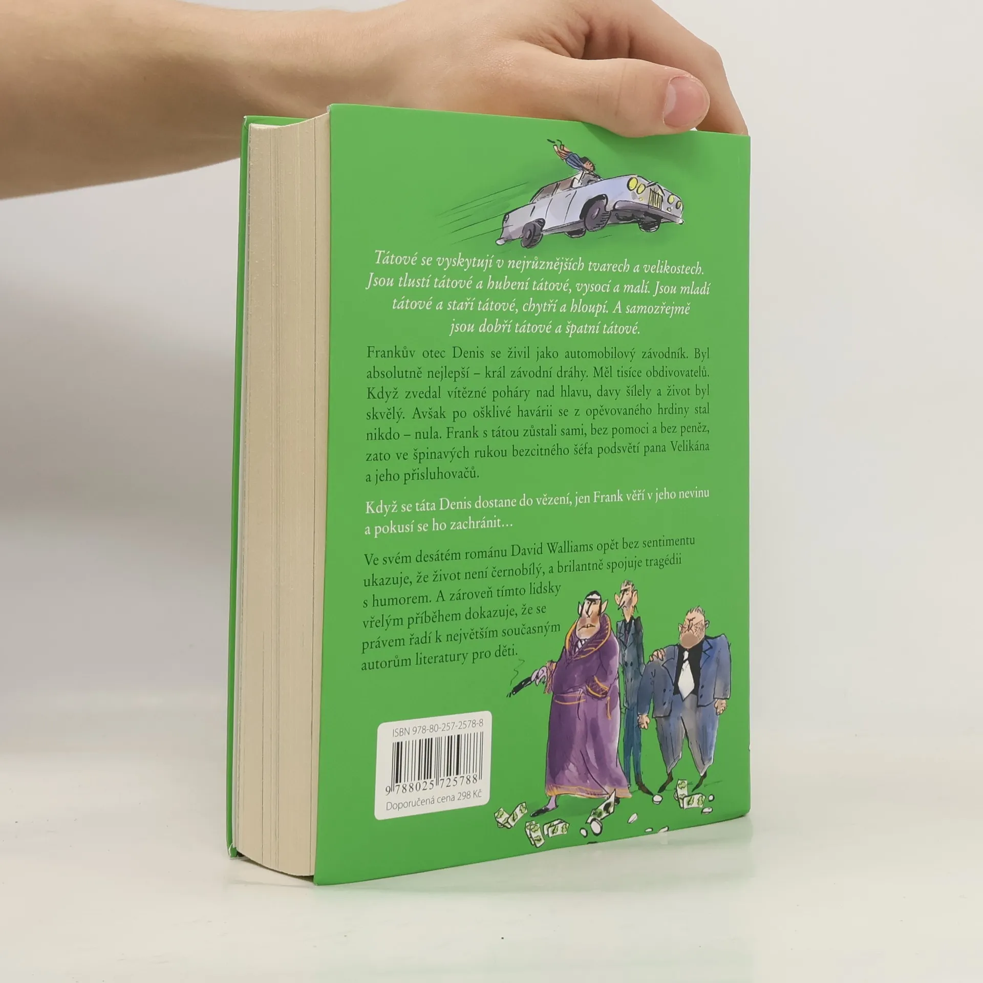 Ve svém desátém románu David Walliams opět bez sentimentu ukazuje, že život není jen černobílý, a se samozřejmostí sobě vlastní brilantně spojuje tragédii s humorem. Frankův otec Denis se živil jako automobilový závodník. Byl absolutně nejlepší – král závodní dráhy. Měl tisíce obdivovatelů. Když zvedal vítězné poháry nad hlavu, davy šílely a život byl skvělý. Avšak po ošklivé havárii se z opěvovaného hrdiny stál nikdo – nula. Frank s tátou zůstali sami, bez pomoci a bez peněz, zato ve špinavých rukou nebezpečného a bezcitného šéfa podsvětí pana Velikána a jeho přisluhovačů. Když se táta Denis dostane do vězení, jen Frank věří v jeho nevinu a pokusí se ho zachránit…