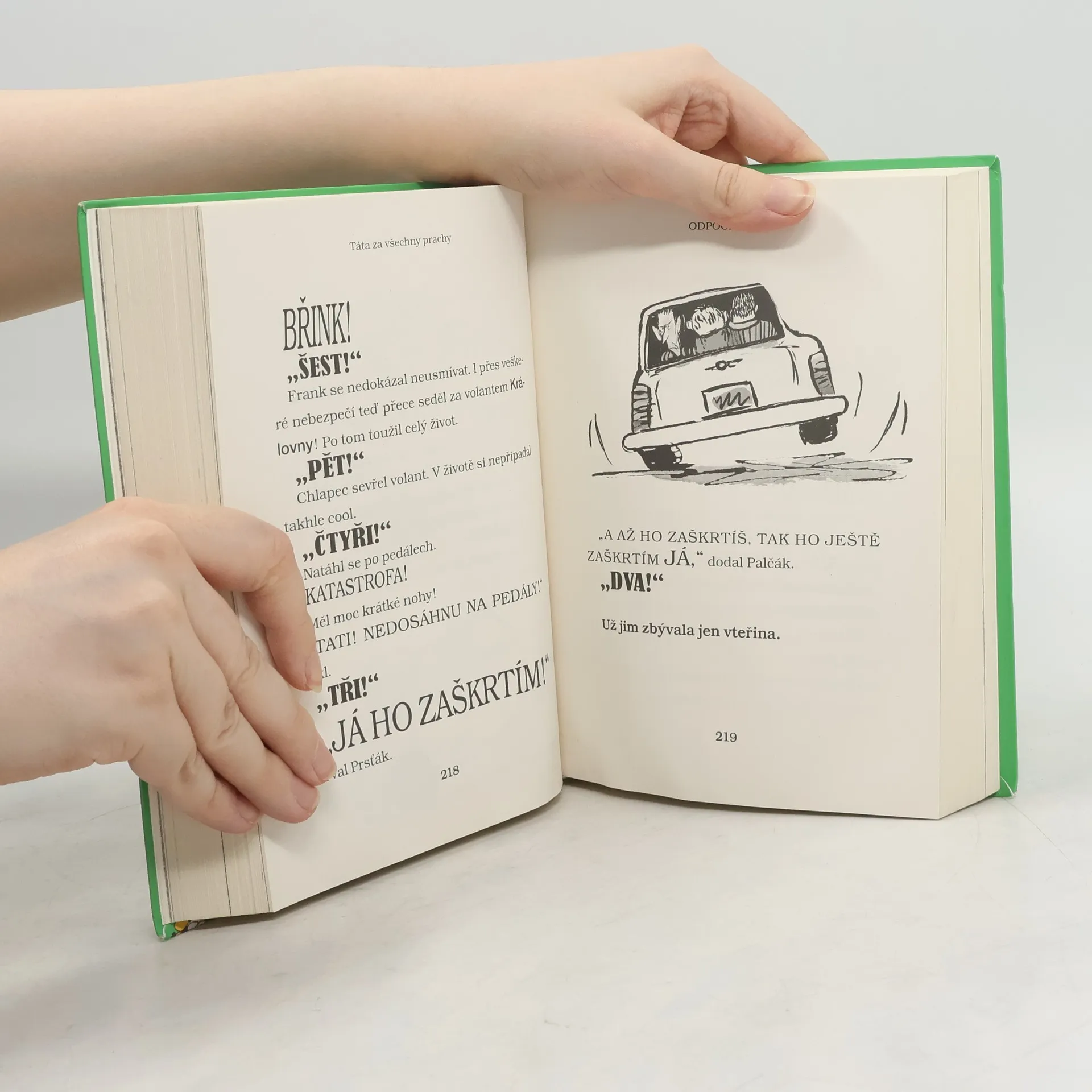 Ve svém desátém románu David Walliams opět bez sentimentu ukazuje, že život není jen černobílý, a se samozřejmostí sobě vlastní brilantně spojuje tragédii s humorem. Frankův otec Denis se živil jako automobilový závodník. Byl absolutně nejlepší – král závodní dráhy. Měl tisíce obdivovatelů. Když zvedal vítězné poháry nad hlavu, davy šílely a život byl skvělý. Avšak po ošklivé havárii se z opěvovaného hrdiny stál nikdo – nula. Frank s tátou zůstali sami, bez pomoci a bez peněz, zato ve špinavých rukou nebezpečného a bezcitného šéfa podsvětí pana Velikána a jeho přisluhovačů. Když se táta Denis dostane do vězení, jen Frank věří v jeho nevinu a pokusí se ho zachránit…