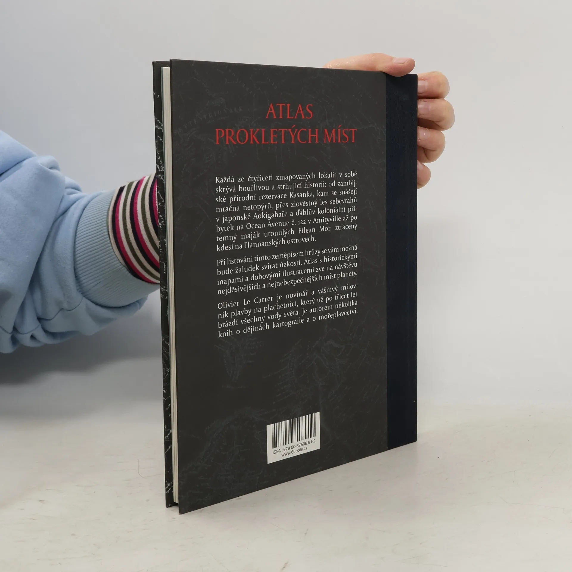 Stylově zpracovaný atlas zve na návštěvu nejděsivějších a nejnebezpečnějších míst planety. Francouzský mořeplavec a znalec geografie Olivier Le Carrer zmapoval čtyřicet lokalit, které v sobě skrývají pohnutou a bouřlivou historii: od zambijské přírodní rezervace Kasanka, kam se snášejí mračna netopýrů, přes zlověstný les sebevrahů v japonské Aokigahaře a ďáblův koloniální příbytek na Ocean Avenue č. 122 v Amityville až po temný maják utonulých Eilean Mor, ztracený kdesi na Flannanských ostrovech. Nechybí zde také nejznámější oblasti tragických událostí jako např. Bermudský trojúhelník či Skylla a Charybda. Při listování tímto zeměpisem hrůzy se vám možná bude žaludek svírat úzkostí. Nevídané panoptikum těch nejnevábnějších míst napříč všemi kontinenty a oceány doplňují historické mapy a dobové ilustrace.
