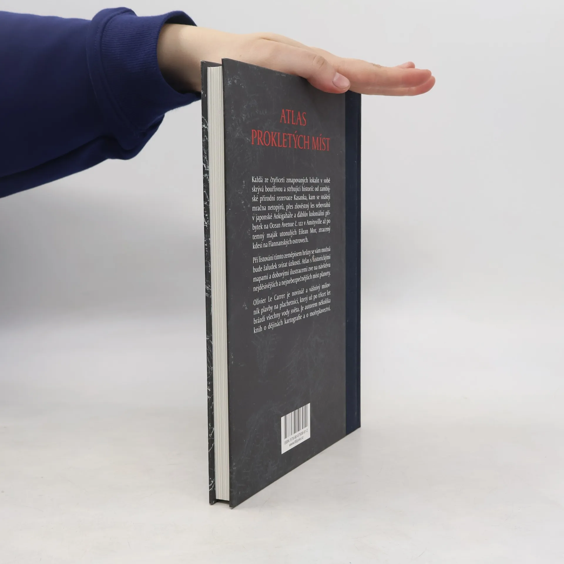 Stylově zpracovaný atlas zve na návštěvu nejděsivějších a nejnebezpečnějších míst planety. Francouzský mořeplavec a znalec geografie Olivier Le Carrer zmapoval čtyřicet lokalit, které v sobě skrývají pohnutou a bouřlivou historii: od zambijské přírodní rezervace Kasanka, kam se snášejí mračna netopýrů, přes zlověstný les sebevrahů v japonské Aokigahaře a ďáblův koloniální příbytek na Ocean Avenue č. 122 v Amityville až po temný maják utonulých Eilean Mor, ztracený kdesi na Flannanských ostrovech. Nechybí zde také nejznámější oblasti tragických událostí jako např. Bermudský trojúhelník či Skylla a Charybda. Při listování tímto zeměpisem hrůzy se vám možná bude žaludek svírat úzkostí. Nevídané panoptikum těch nejnevábnějších míst napříč všemi kontinenty a oceány doplňují historické mapy a dobové ilustrace.