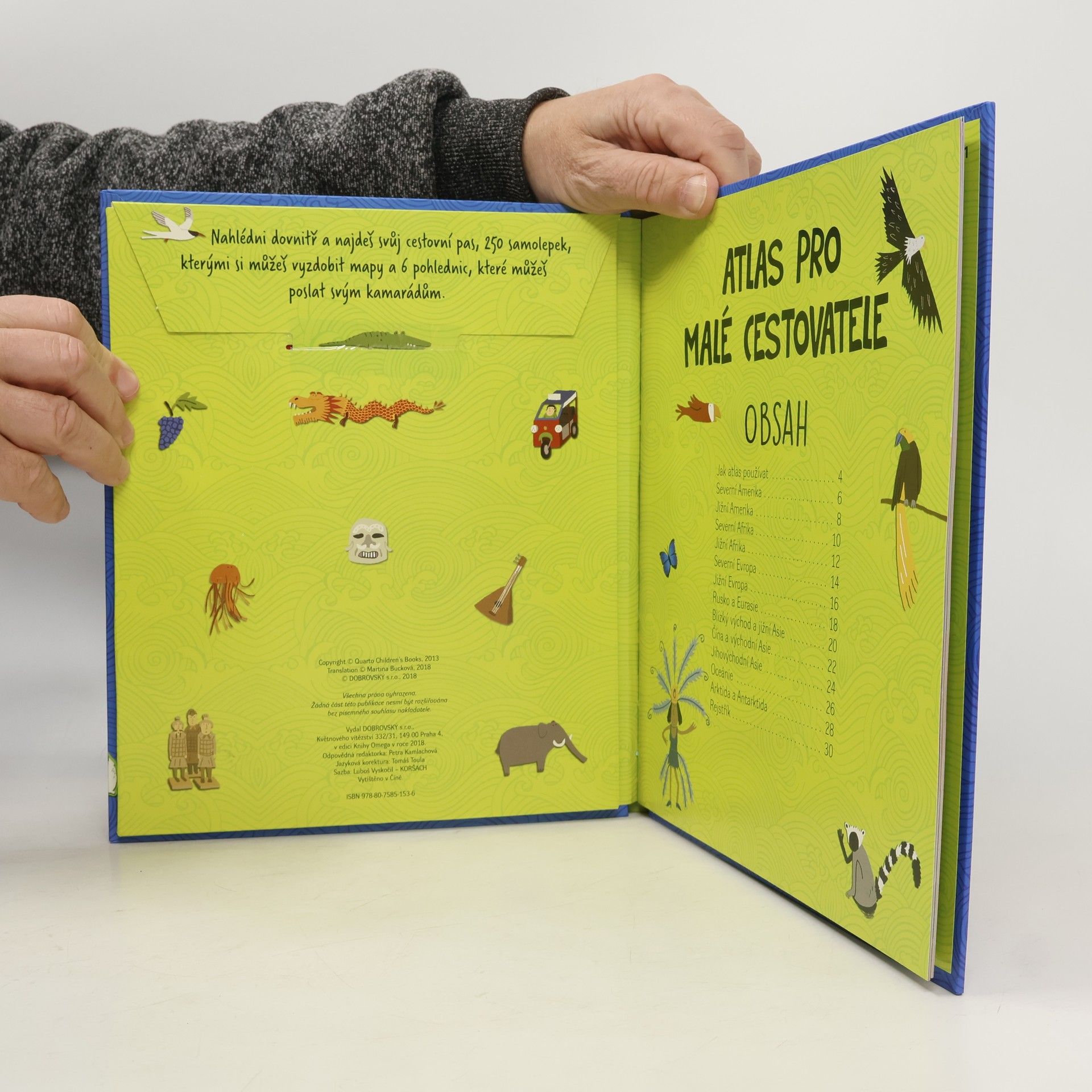 Interaktivní a zábavný způsob objevování našeho světa Vydejte se objevovat! Prozkoumejte svět s tímto úžasným atlasem plným aktivit. Barevně ilustrované mapy plné informací si můžete doplnit pomocí více než 250 samolepek vlajek, zvířat, známých krajinných prvků a zázraků přírody.