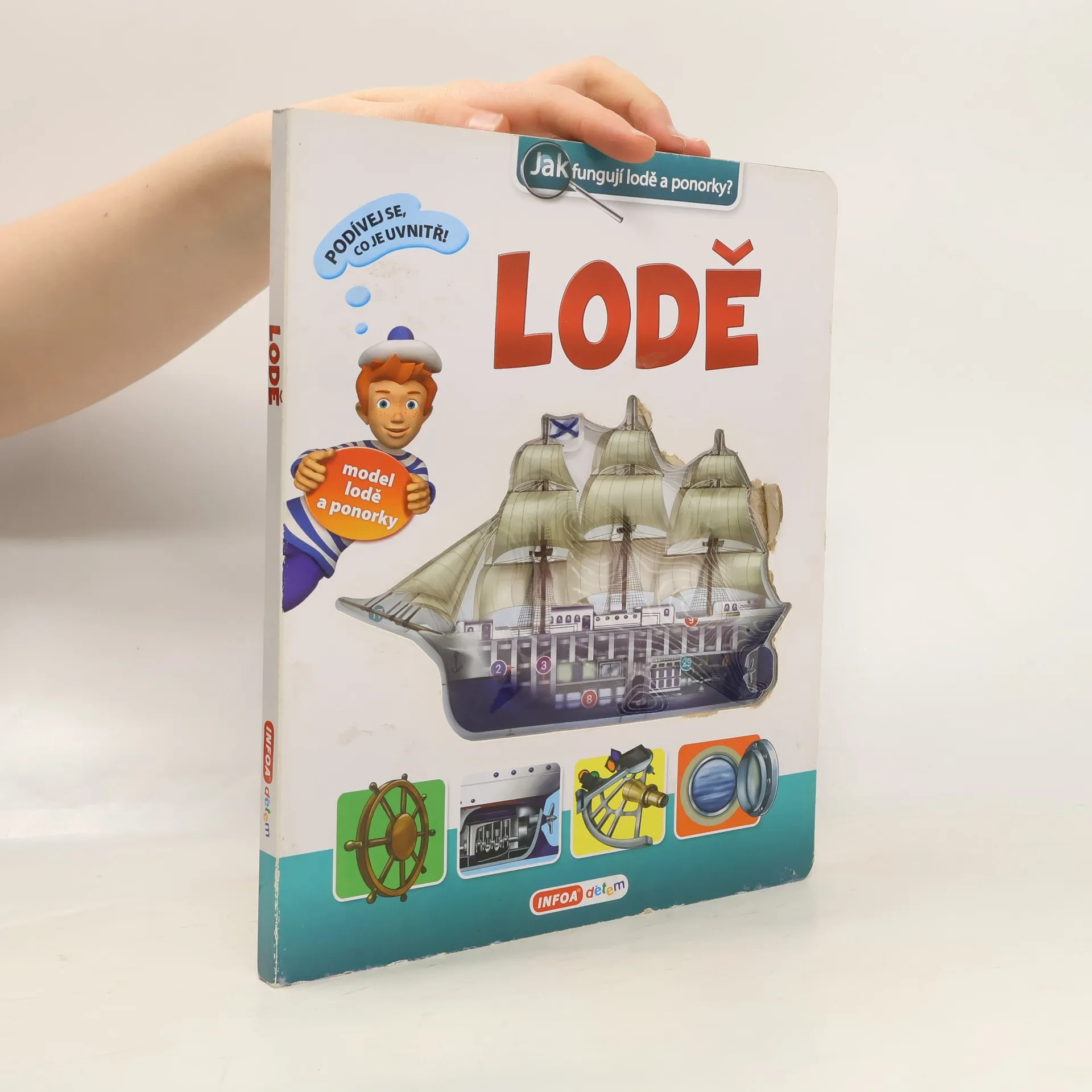 Z čeho se skládá trup lodi? Jaké jsou druhy plachet? Co pohání ponorku pod vodou? Složité se stane jednoduchým a pochopitelným díky této neobyčejné knize. Najdeš v ní totiž modely plachetnice a atomové ponorky!