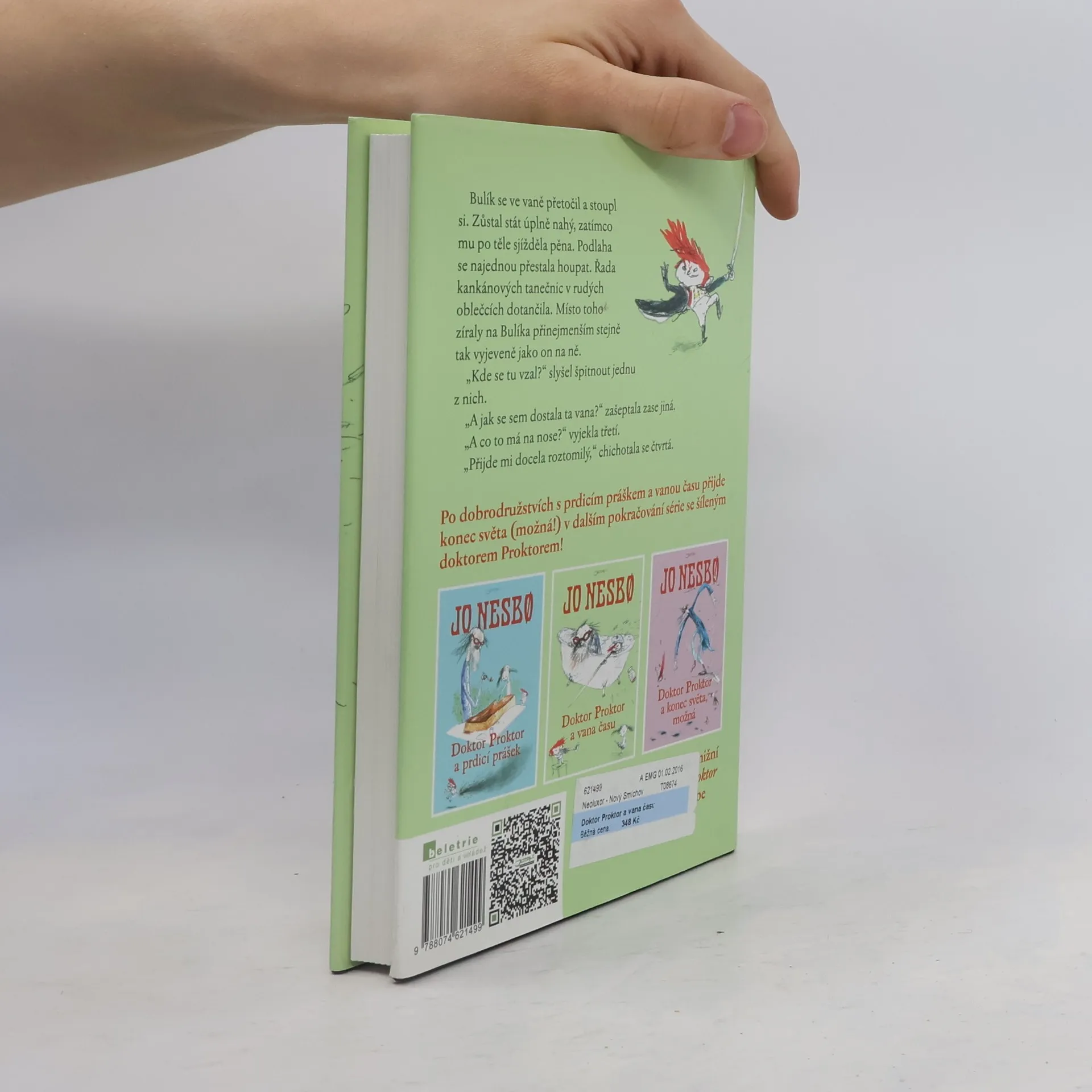 Zběsilá jízda časem v zábavném a napínavém pokračování o doktoru Proktorovi. Doktor Proktor se vydává do Paříže, aby znovu našel svou dávnou lásku, Julietu Margarínovou. V poštovní schránce Lízy Pedersenové v Dělové ulici se jednoho dne objeví zvláštní pohlednice. Je od doktora Proktora. Líze a Bulíkovi se nakonec podaří vzkaz rozluštit a zjišťují, že doktor Proktor se bez jejich pomoci nemůže dostat nazpět z minulosti. Proč je ale jeho zpráva šifrovaná? Hrozí mu nějaké nebezpečí? Doktorovi věrní přátelé se brzy ocitají v Paříži, kde potkávají Julietu. Tyto bývalé hrdličky se musely před téměř čtyřiceti lety rozdělit za velmi dramatických okolností a doktor Proktor nyní vyrazil za pomoci svého starého vynálezu, vany času, do minulosti, aby změnil chod tehdejších událostí. Nepodařilo mu však vrátit do přítomnosti a jediné, co vyplavalo z vany, u které na něj Julieta čekala, byla pohlednice adresovaná Líze. Nezbývá tedy nic jiného, než aby Líza s Bulíkem podnikli svou životní koupel a vyrazili do minulosti na pomoc doktoru Proktorovi. První dětská knížka Jo Nesba sklidila nadšené kritiky. Připravte se na zběsilou jízdu časem v tomhle zábavném a napínavém pokračování o doktoru Proktorovi...