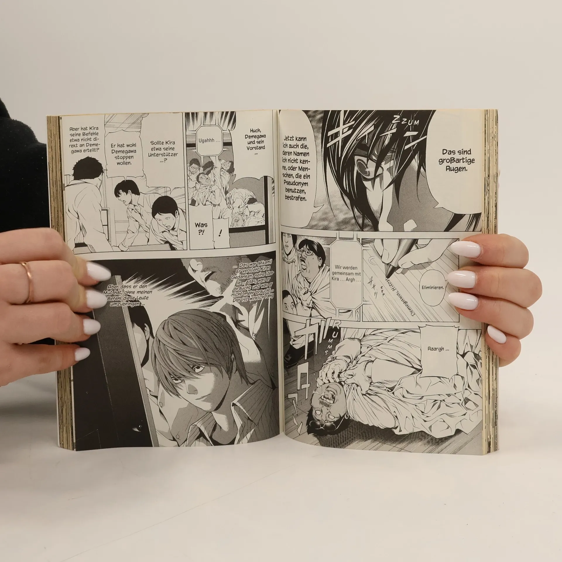 Near und seine Leute sind von Kira-Anhängern umzingelt und müssen sich mit viel Fantasie aus dieser fatalen Situation befreien. Nears Misstrauen gegenüber L wächst. Um das Geheimnis um dessen Identität zu lüften, geht Near schließlich zum Angriff über. Die japanische Ermittlungszentrale ist erschüttert...