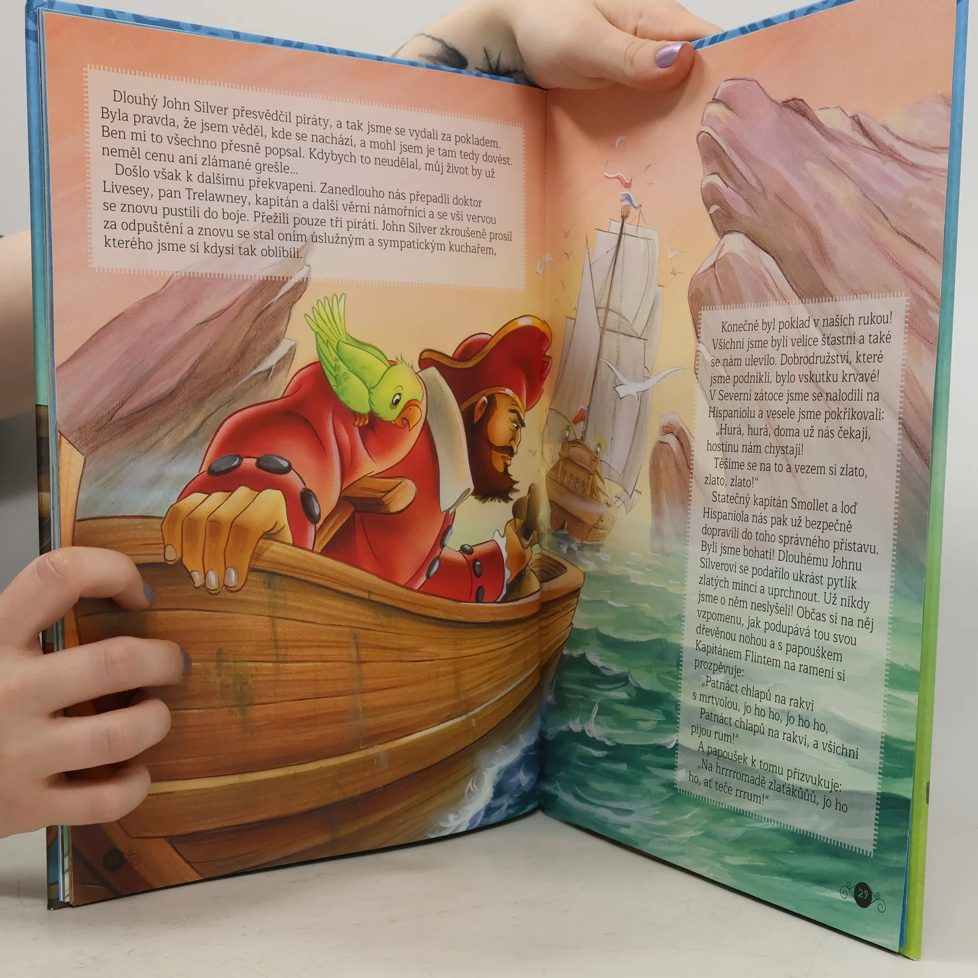 Bohatě ilustrované, zkrácené převyprávění klasického dobrodružného románu z námořního prostředí o nebezpečné výpravě za pokladem starého piráta.