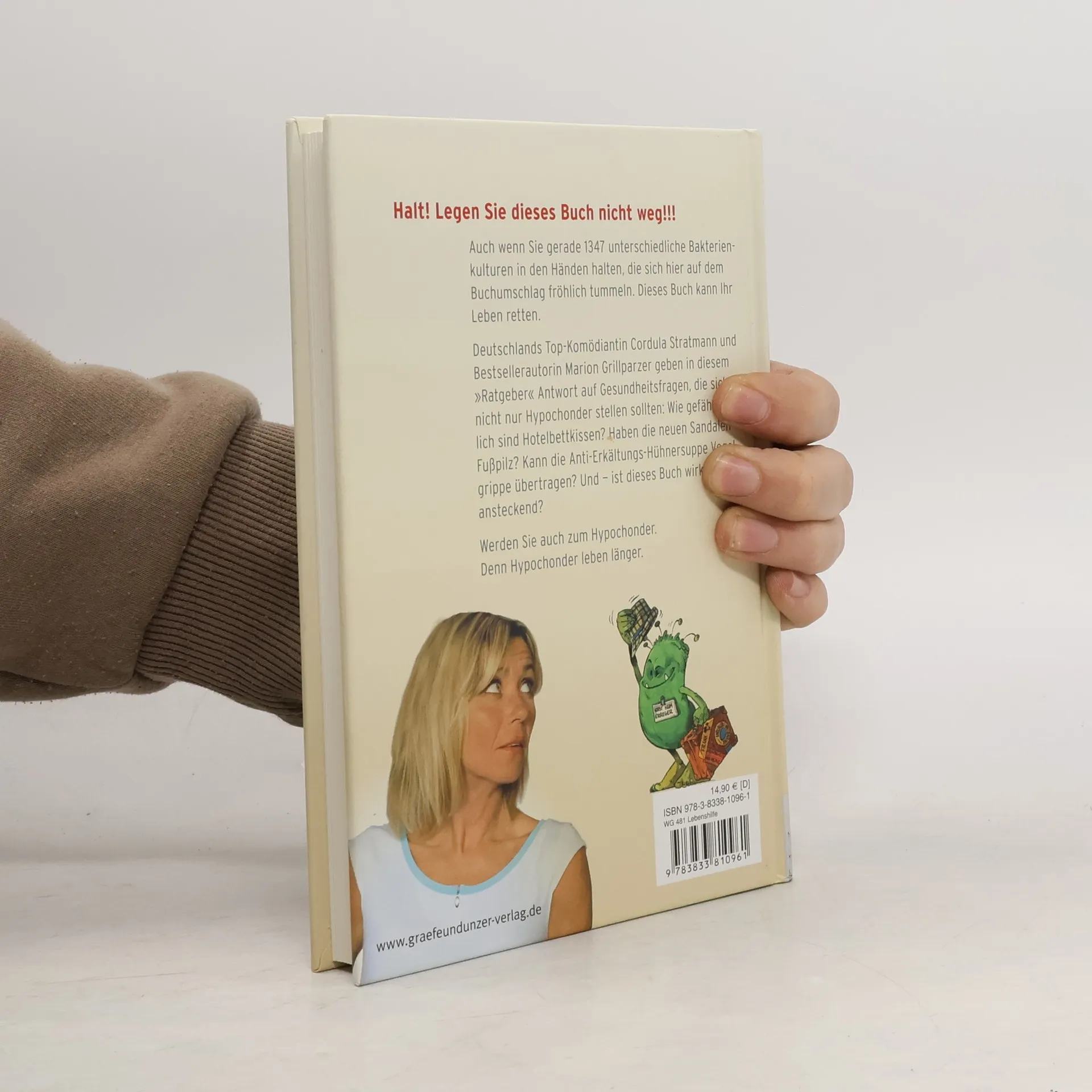 Das Leben ist lebensgefährlich. Wer wüsste das nicht besser als die körperbewusste Menschengattung der Hypochonder. In verzweifelten E-Mails holt sich Deutschlands beliebteste Komödiantin Cordula Stratmann, bekannt aus der Schillerstraße und Das weiß doch jedes Kind, deshalb Rat von der Gesundheitsexpertin Marion Grillparzer zu Themen, bei denen wir alle noch lernen können: Wie gefährlich sind Hotelbettkissen? Kann ein Pickel zu einer Hirnhautentzündungen führen? Was tun, wenn man aus Versehen ein Ei von einem unglücklichen Huhn verspeist hat? Und apropos Hühner: Kann die Anti-Erkältungs-Hühnersuppe Vogelgrippe übertragen? Lachen ist bekanntlich die beste Medizin. Hier werden Sie lachen, bis der Arzt kommt.