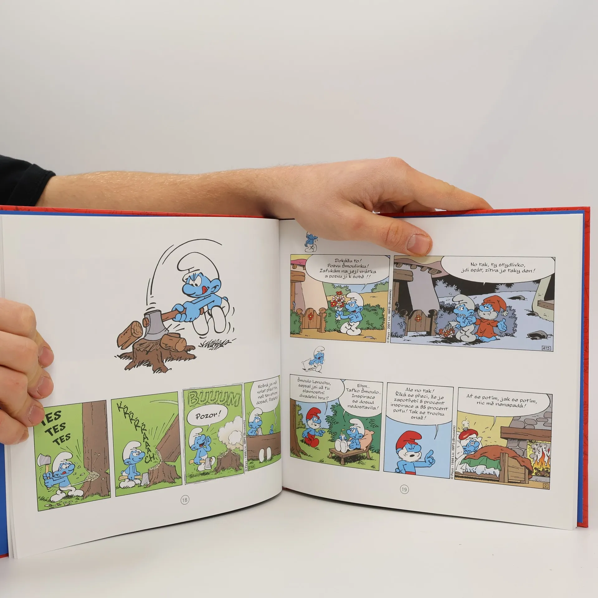 Trumpetka troubí ostošest, ale ostatním šmoulům se to jaksi nelíbí. Lenoch zase každou chvíli usne v košíku, kde jinak spí Mrně. Malířovi se na kurz kreslení přihlásí spousta zájemců, ale když zjistí, že místo Šmoulinky se bude kreslit ovoce, najednou se všichni vypaří. Nejnovější šmoulí knížka obsahuje 120 komiksových stripů, v nichž šmoulové zažívají samé veselé příhody.