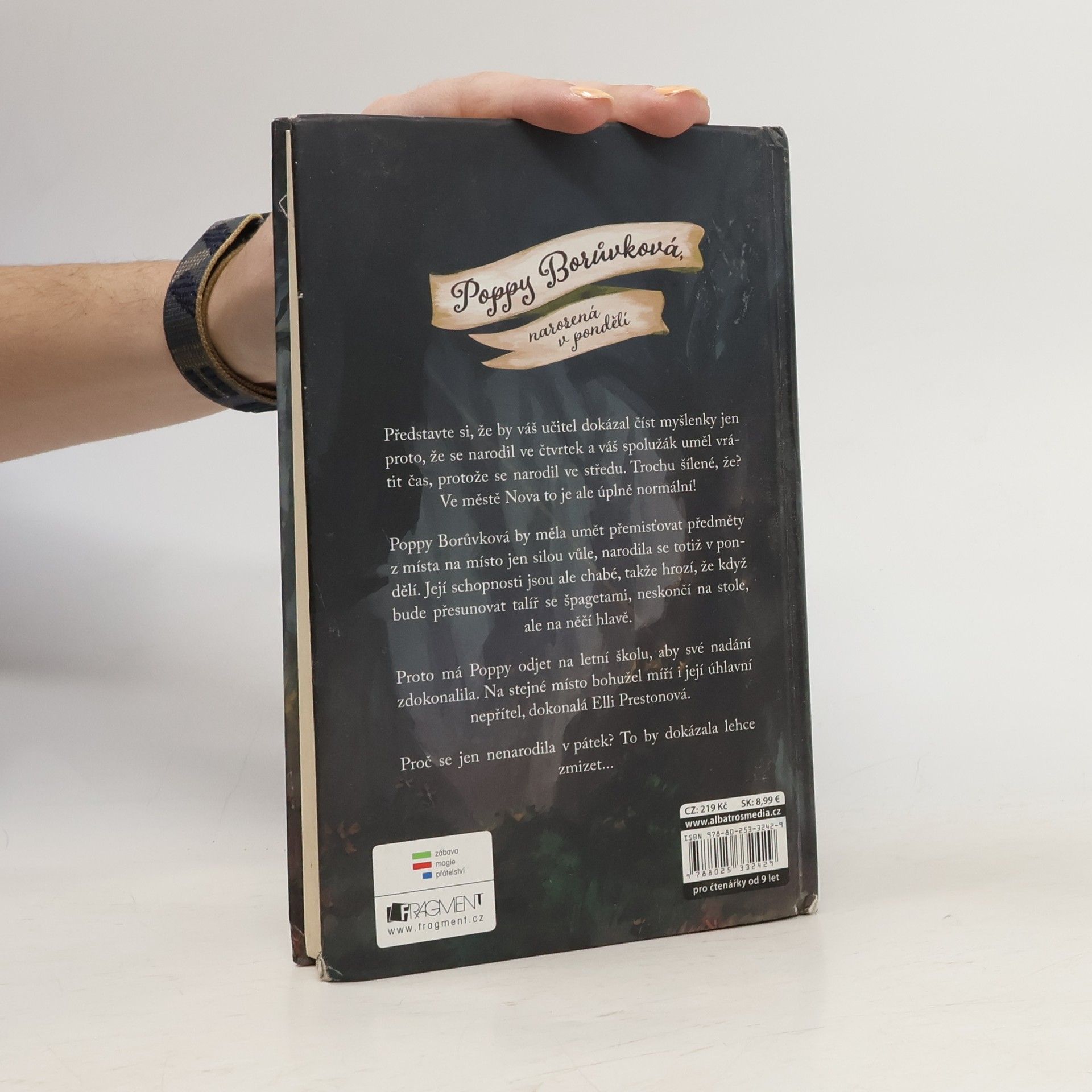 Představte si, že by váš učitel dokázal číst myšlenky jen proto, že se narodil ve čtvrtek a váš spolužák uměl vrátit čas, protože se narodil ve středu. Trochu šílené, že? Ve městě Nova to je ale úplně normální! Poppy Borůvková by měla umět přemisťovat předměty z místa na místo jen silou vůle, narodila se totiž v pondělí. Její schopnosti jsou ale chabé, takže hrozí, že když bude přesunovat talíř se špagetami, neskončí na stole, ale na něčí hlavě. Proto má Poppy odjet na letní školu, aby své nadání zdokonalila. Na stejné místo bohužel míří i její úhlavní nepřítel, dokonalá Elli Prestonová. Proč se jen nenarodila v pátek? To by dokázala lehce zmizet...