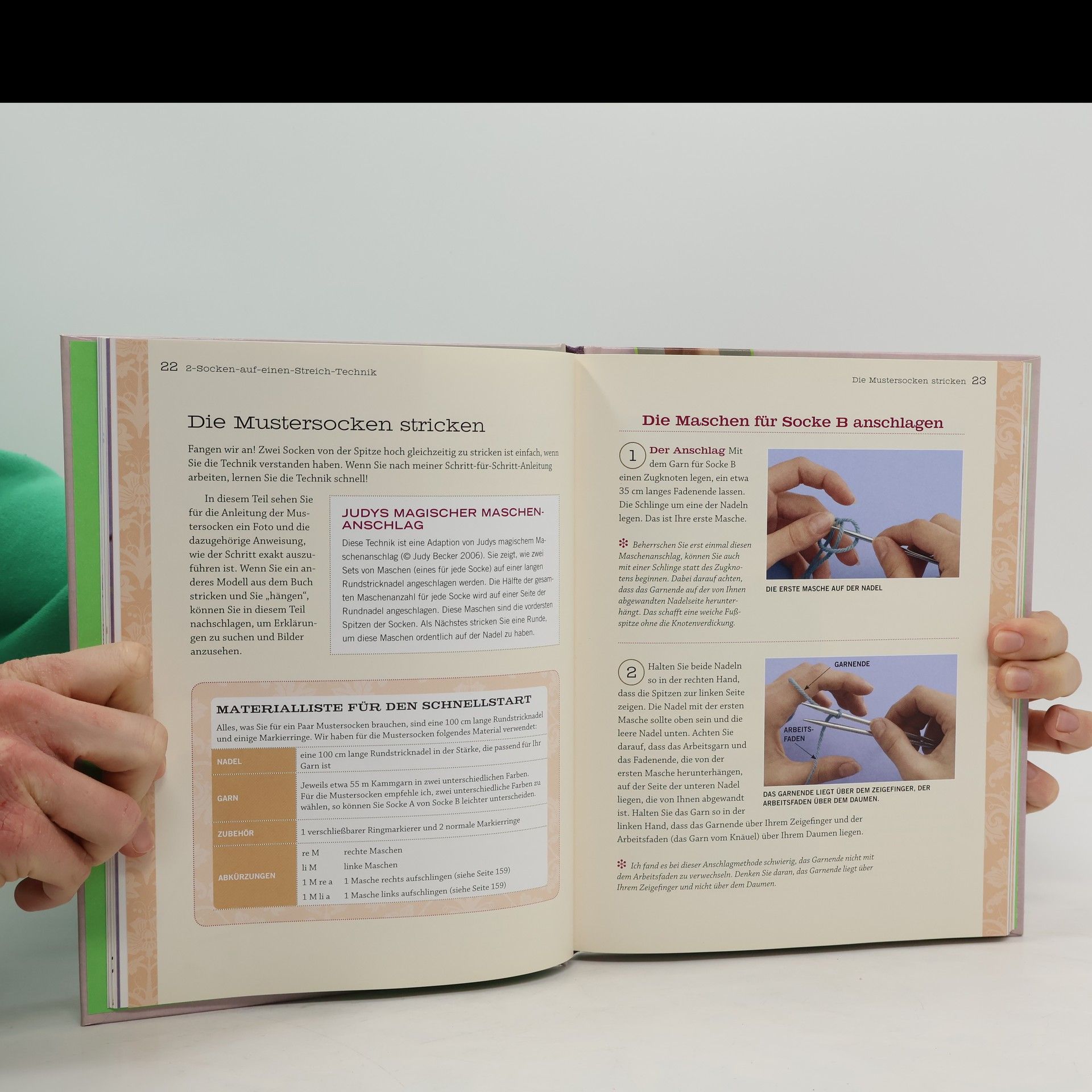 So macht Sockenstricken viel mehr Freude Zwei Stricktechniken, die das Sockenstricken veränderten und erleichtern, sind nun endlich vereint: Beide Socken werden gleichzeitig auf einer Rundstricknadel gestrickt, und zwar von der Spitze zum Bündchen. Die Vorteile sind für Anfängerinnen und erfahrene Strickkünstlerinnen offensichtlich: Die Länge des Fußes und des Schafts kann passgenau gestrickt werden, die Socken lassen sich jederzeit problemlos anprobieren und beide Socken werden gleichzeitig fertig.