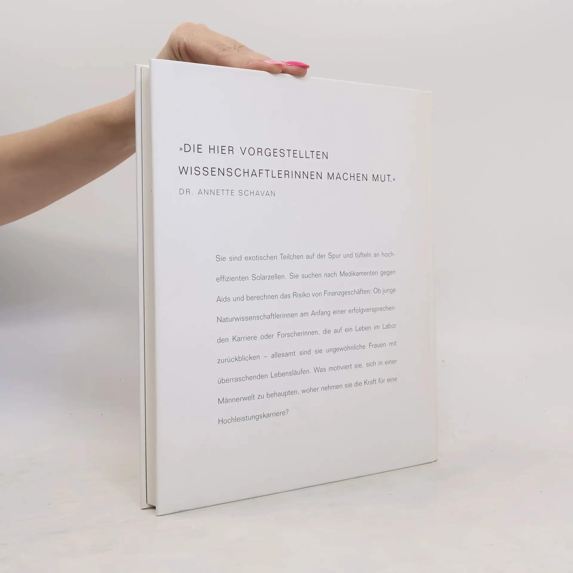 In einer Welt voller Bilder gibt es zwar allerlei Abziehbilder von Frauen, aber offenbar wenig Fotografien. Diese Erfahrung machte die Fotografin Bettina Flitner, als sie versuchte, ein Foto von Christiane Nüsslein-Volhard aufzutreiben. Egal, bei welcher Agentur sie auch anfragte: Fehlanzeige. Und das, obwohl die Wissenschaftlerin gerade als erste Deutsche den Nobelpreis für Medizin erhalten hatte. Für Flitner, die 'eigenwilligste und interessanteste Fotografin unserer Zeit' (Deutsche Welle) Anstoß für ein groß angelegtes Projekt. Konnte es tatsächlich sein, dass Frauen, die mehr als die Hälfte der Weltbevölkerung stellen, in einem Bereich wie der Forschung überhaupt nicht vorkommen? Und wenn doch: Wie sehen sie aus? Und woran forschen sie überhaupt? Bettina Flitner porträtiert in ihrem neuen Buch 25 Frauen, die in ihren Fachgebieten zur absoluten Weltspitze zählen. Sie stellt Forscherin und Objekt in einen neuen Kontext und hält so mal ironisch, mal distanziert, aber immer einfühlsam Momente fest, die sonst vor der Öffentlichkeit verborgen bleiben. Jeanne Rubner, Politikjournalistin bei der SZ, und acht weitere renommierte Journalistinnen zeichnen die Biographien dieser ungewöhnlichen Frauen nach. Spritzig und informativ geschrieben, mit kurzen Texten zu den Fachbereichen der Forscherinnen. Ein Buch über Frauen, die Mut haben … und Mut machen.