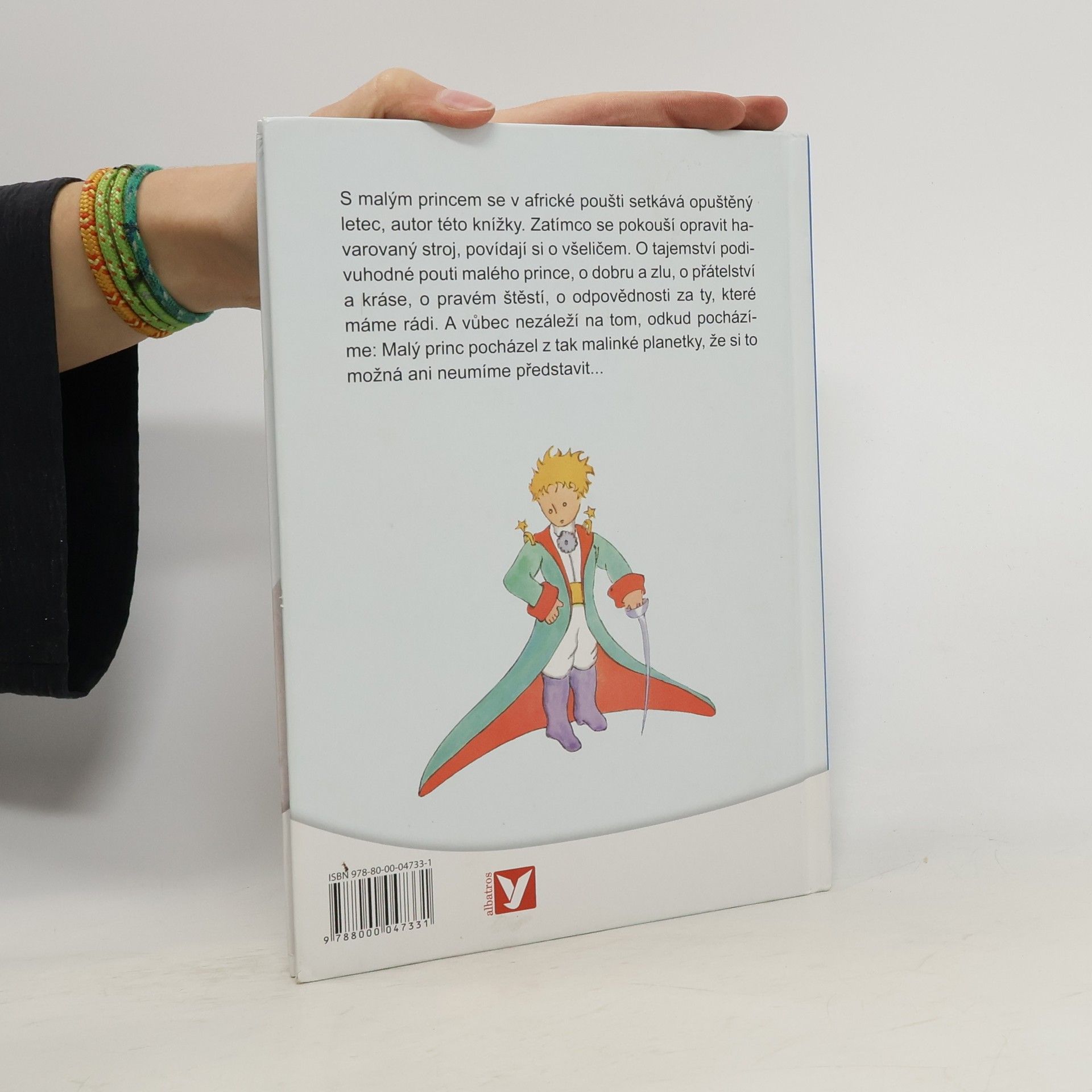 S Malým princem se v africké poušti setkává opuštěný letec, autor této knížky. Zatímco se pokouší opravit havarovaný stroj, povídají si o všeličem. O tajemství podivuhodné pouti Malého prince, o dobru a zlu, o přátelství a kráse, o pravém štěstí, o odpovědnosti za ty, které máme rádi. A vůbec nezáleží na tom, odkud pocházíme: Malý princ pocházel z tak malinké planetky, že si to možná ani neumíme představit...
