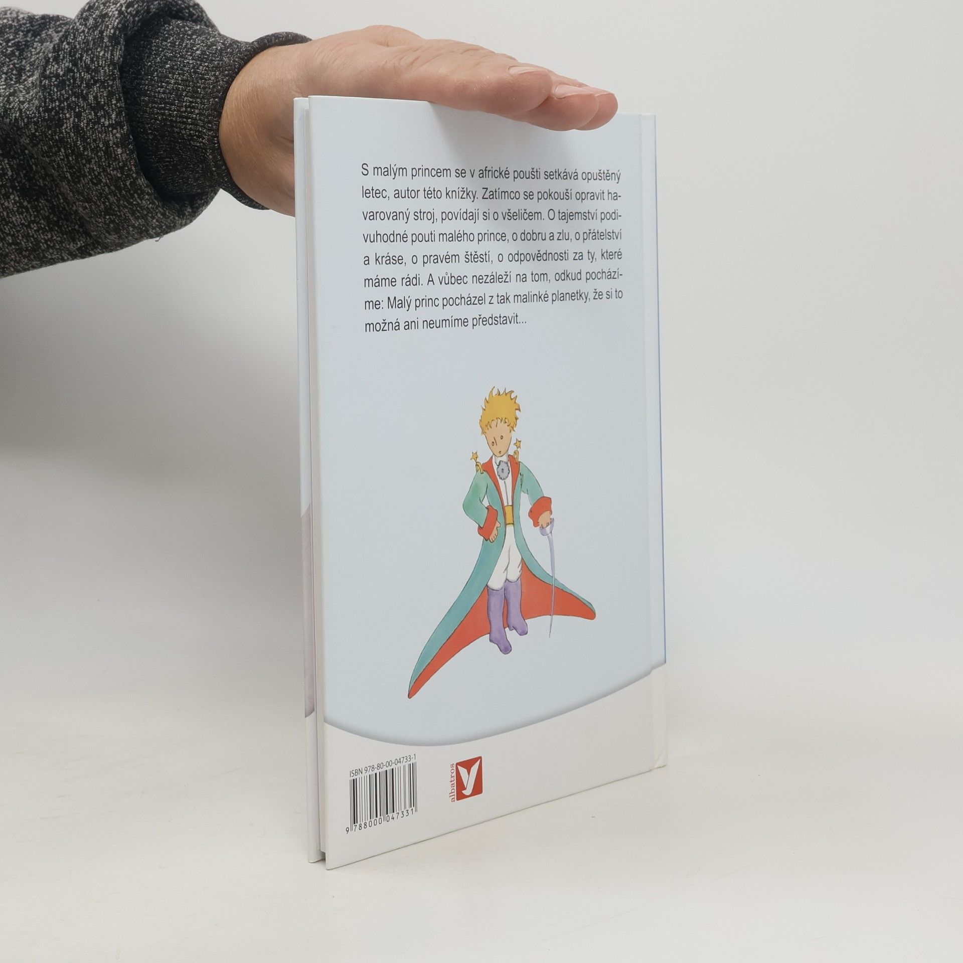 S Malým princem se v africké poušti setkává opuštěný letec, autor této knížky. Zatímco se pokouší opravit havarovaný stroj, povídají si o všeličem. O tajemství podivuhodné pouti Malého prince, o dobru a zlu, o přátelství a kráse, o pravém štěstí, o odpovědnosti za ty, které máme rádi. A vůbec nezáleží na tom, odkud pocházíme: Malý princ pocházel z tak malinké planetky, že si to možná ani neumíme představit...