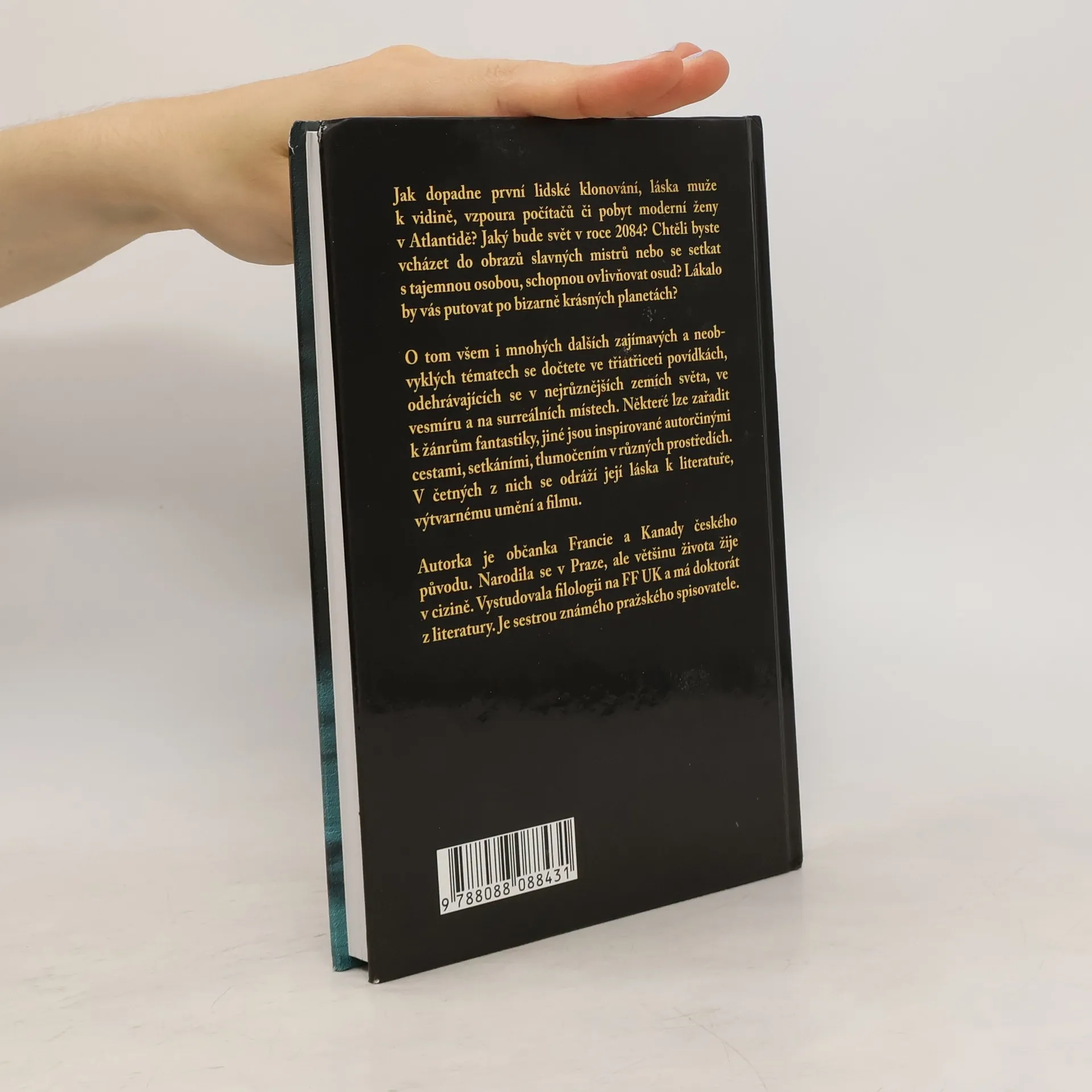 Jak dopadne první lidské klonování, láska muže k vidině, vzpoura počítačů či pobyt moderní ženy v Atlantidě? Jaký bude svět v roce 2084? Chtěli byste vcházet do obrazů slavných mistrů nebo se setkat s tajemnou osobou, schopnou ovlivňovat osud? Lákalo by vás putovat po bizarně krásných planetách?O tom všem i mnohých dalších zajímavých a neobvyklých tématech se dočtete ve třiatřiceti povídkách, odehrávajících se v nejrůznějších zemích světa, ve vesmíru a na surreálních místech. Některé lze zařadit k žánrům fantastiky, jiné jsou inspirované autorčinými cestami, setkáními, tlumočením v různých prostředích. V četných z nich se odráží její láska k literatuře, výtvarnému umění a filmu.Autorka je občanka Francie a Kanady českého původu. Narodila se v Praze, ale většinu života žije v cizině. Vystudovala filologii na FF UK a má doktorát z literatury. Je sestrou známého pražského spisovatele.